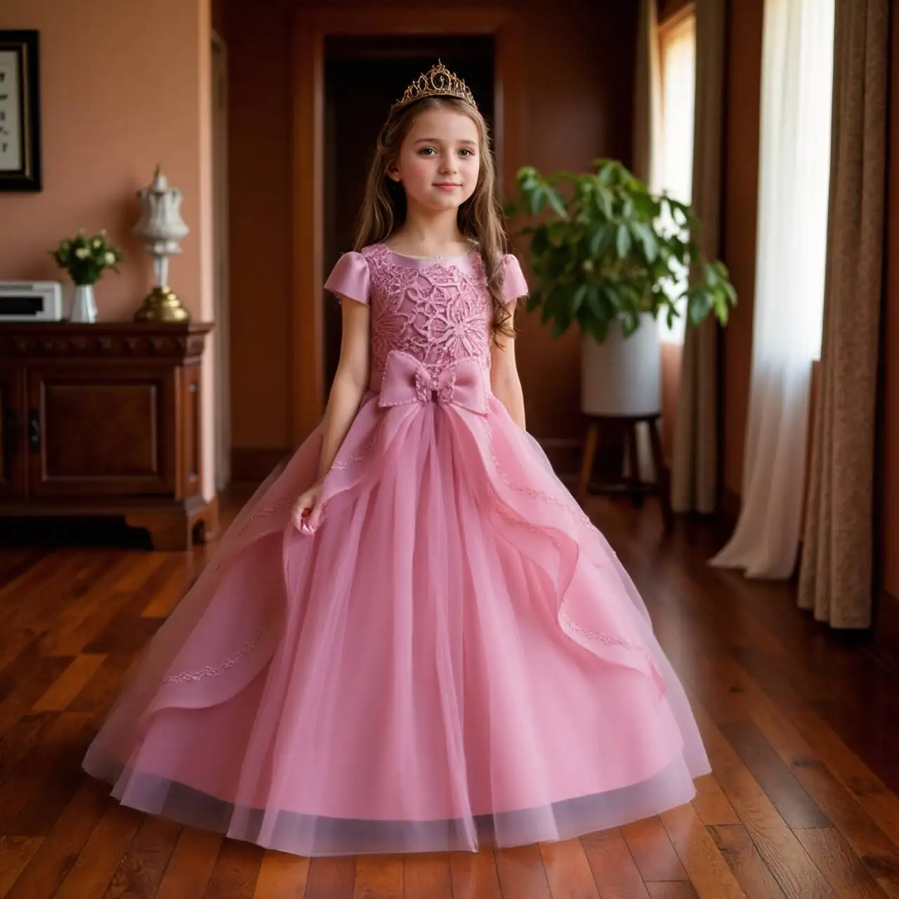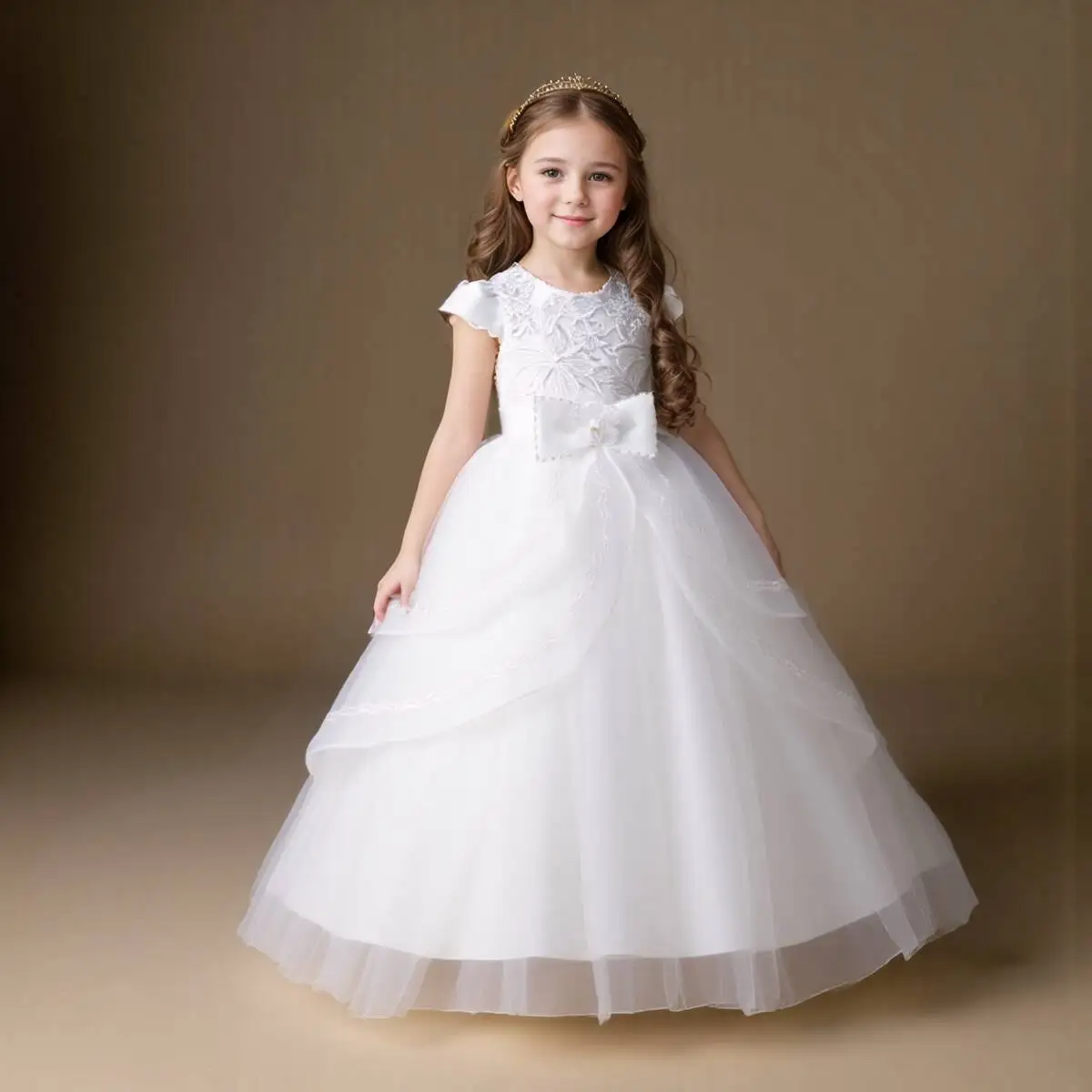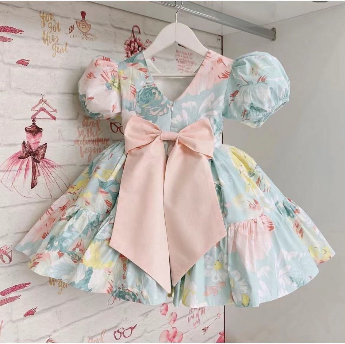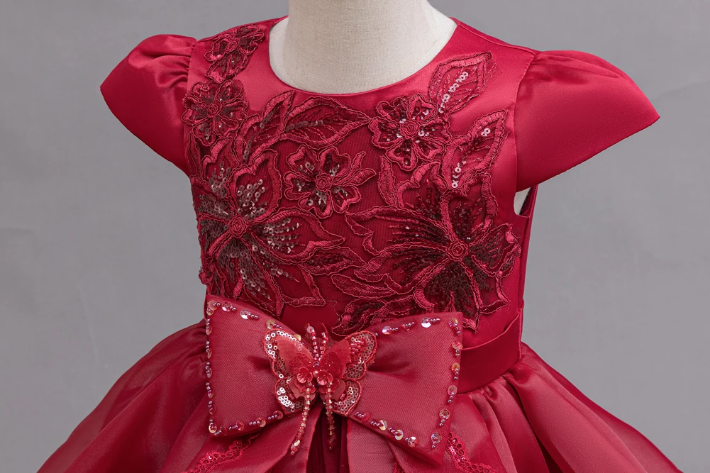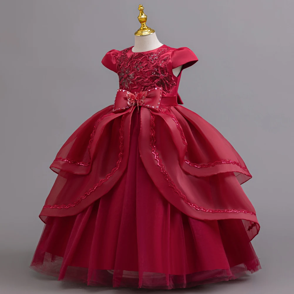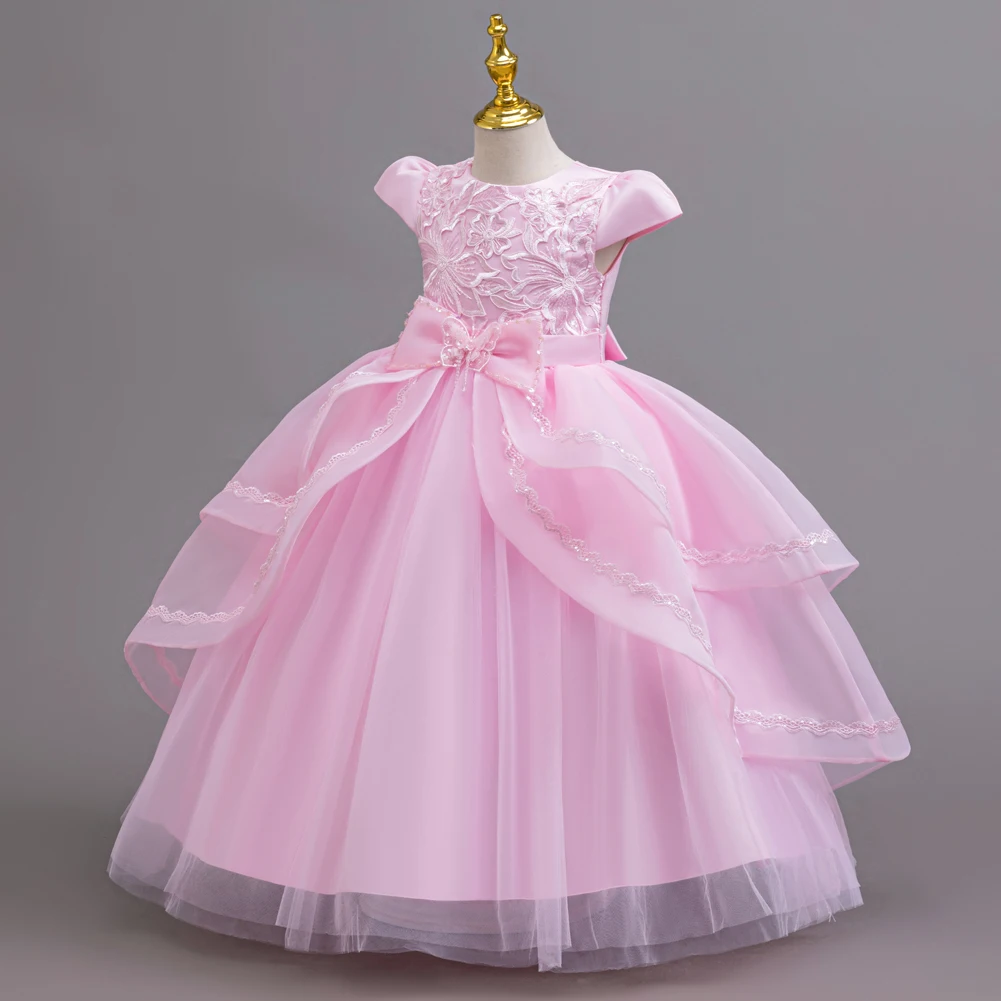 Kids Princess Dress With Bow Puffy Tulle For Advanced Piano Performance Evening Dinner Wedding Hostess Formal Party Outfit