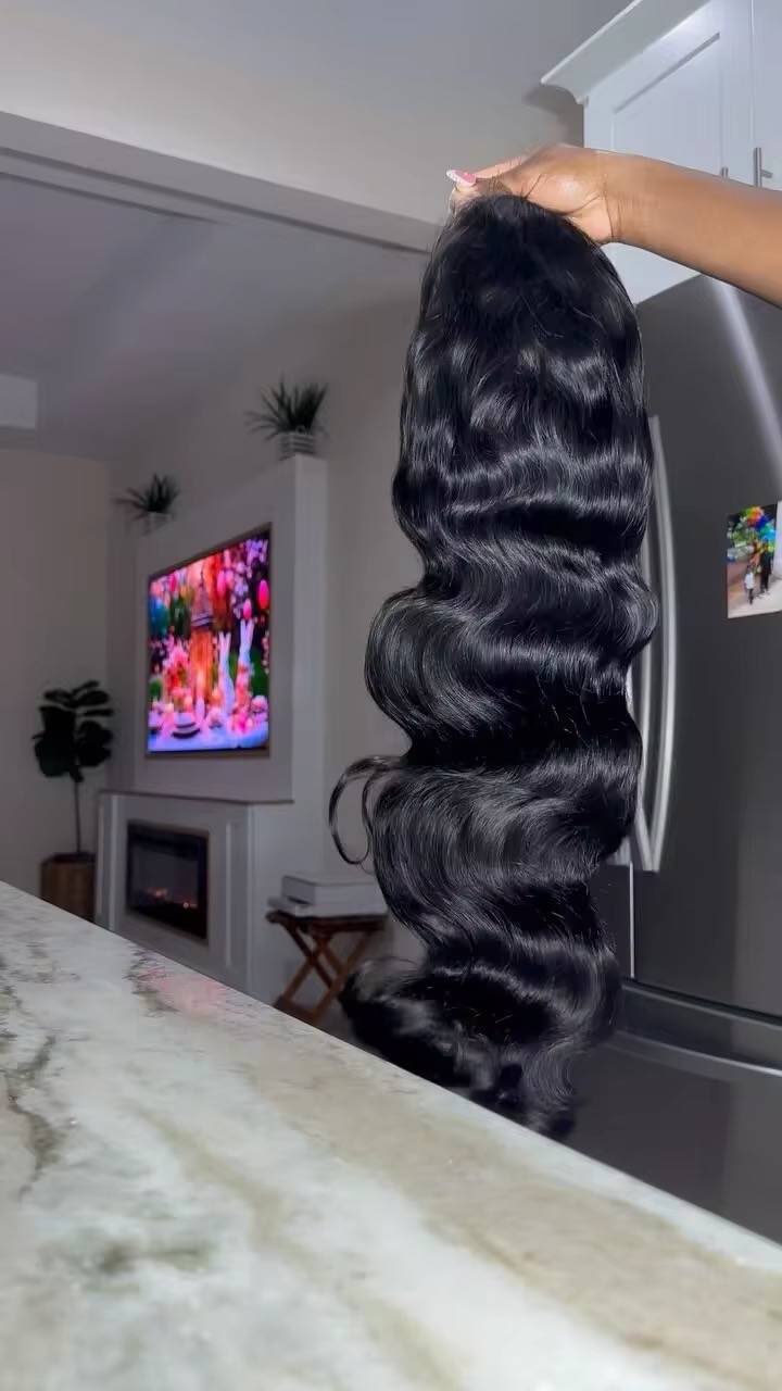 This is my second time purchasing a wig from this company and I’m still in love with it .The wig is very soft and full .The hair also holds a curl well .This is a 28 inch wig 13x6