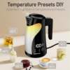 【Precise Temperature Control with 5 Preset Options & DIY Mode】The electric tea kettle offers precise temperature settings from 40°C to 100°C, with an impressive accuracy of ±1°C. Choose from 5 preset temperatures for the perfect brew: 40°C for warm water, 70°C for white tea, 80°C for green tea, 90°C for coffee, and 100°C for black or herbal tea. You can also customize your own temperature for a personalized brewing experience. Pefect match for tea, coffee, oatmeal and much more.