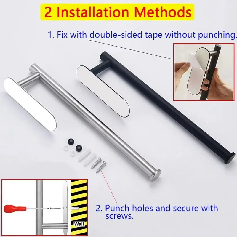 Kitchen Utensil Hanging Rack Stainless Steel Paper Towel Holder Wall Mounted Tissue Roll Holder for Cabinet and Bathroom