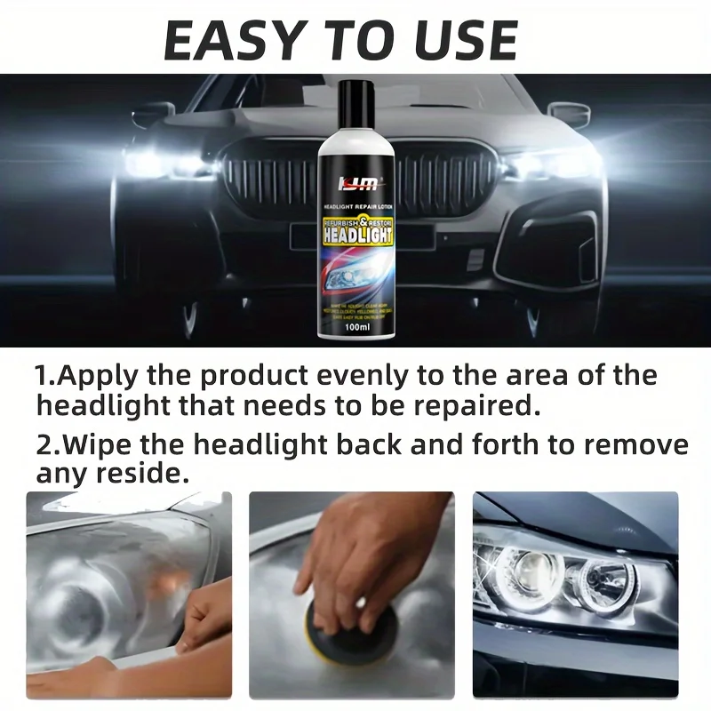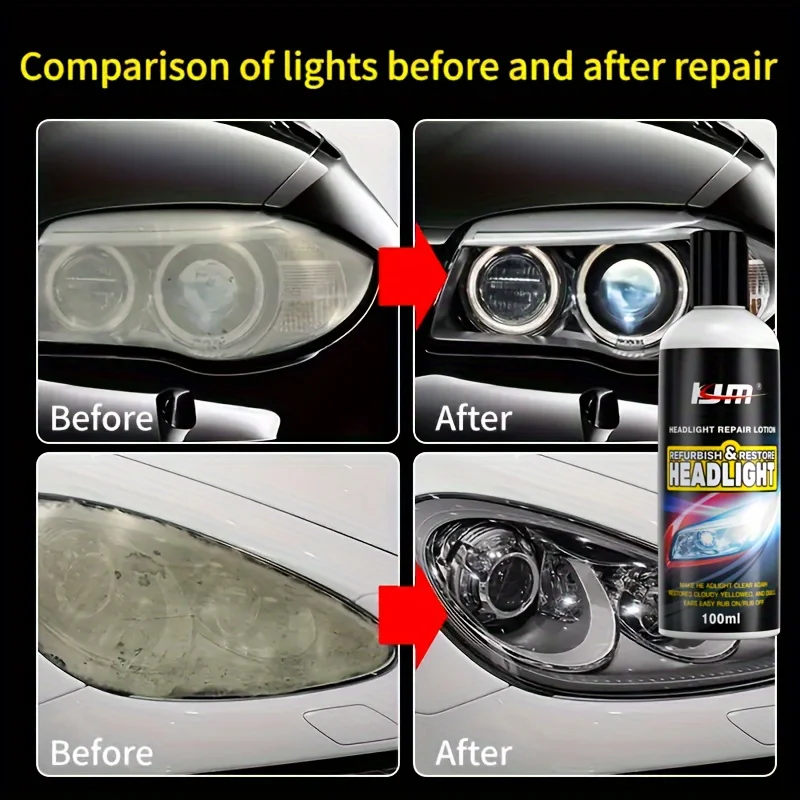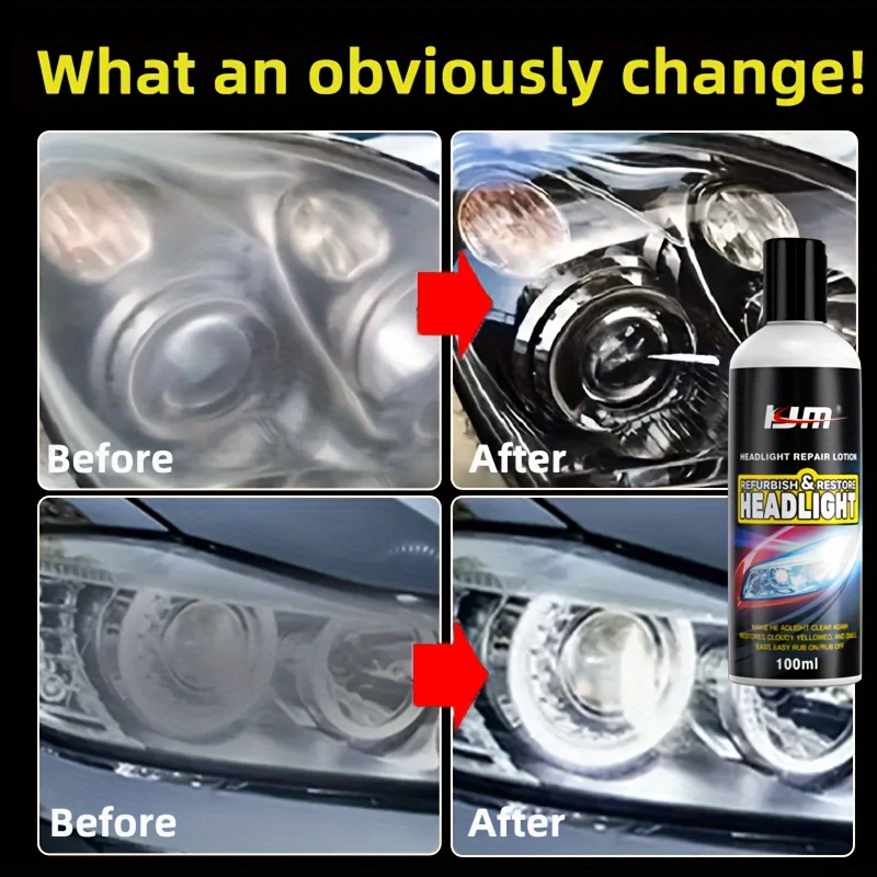 KJM Headlight Restoration Kit – Universal Car Headlight Polishing and Renovation Wax, Yellowing and Oxidation Repair Paste