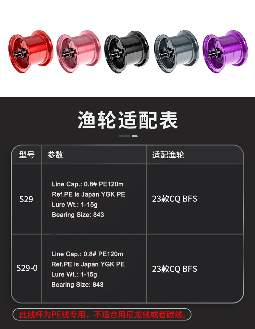 Warm Tips: PE line is recommended for thin-walled spool. The tension of nylon line & fluorocarbon line easily cause the deformation of spool. So don’t use nylon line & fluorocarbon line.
