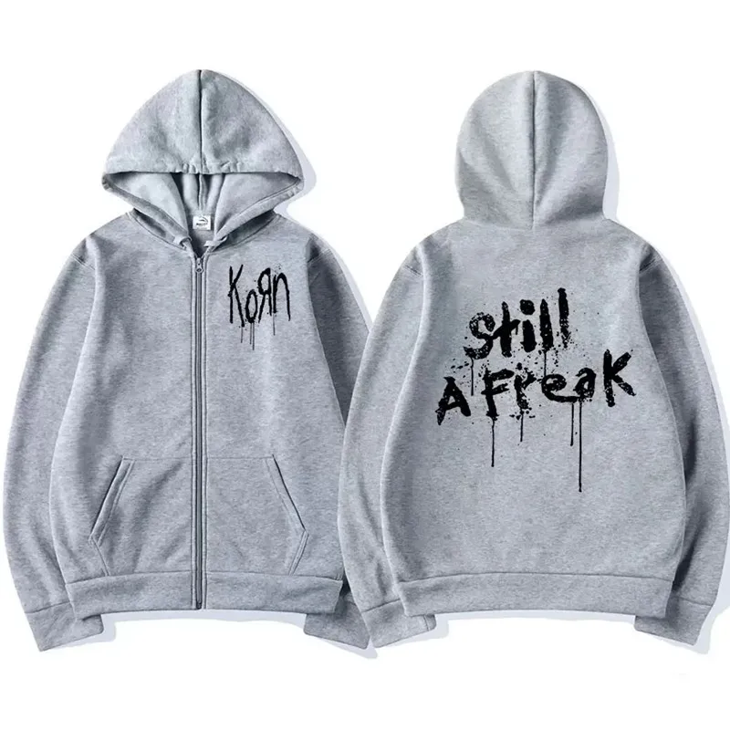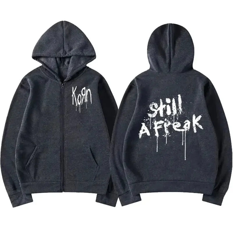Korn Hoodies Men Women Gothic Metal Music Concert World Tour Punk Retro Zipper Sweatshirts Long Sleeves Zip-up Jacket Coats