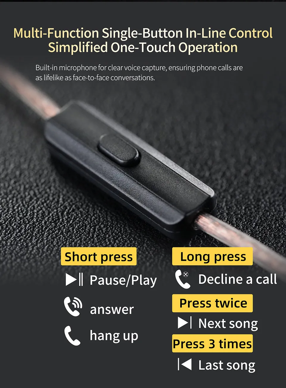 Built-in microphone for clear voice capture, ensuring phone calls are as lifelike as face-to-face conversations