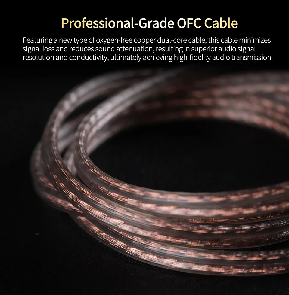 Featuring a new type of oxygen-free copper dual-core cable, this cable minimizes signal loss and reduces sound attenuation, resulting in superior audio signal resolution and conductivity, ultimately achieving high-fidelity audio transmission.
