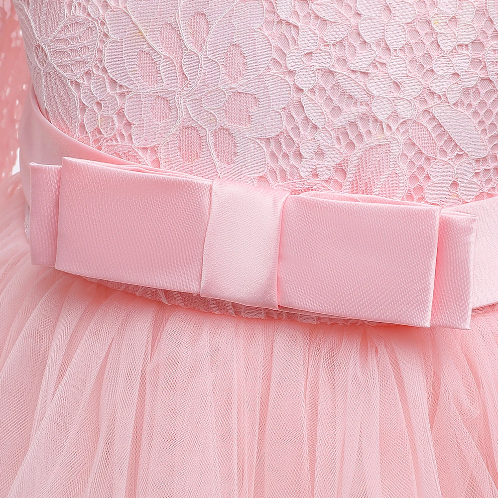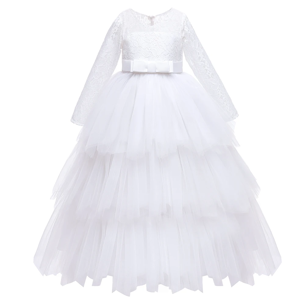 Lace Long Sleeve White Bridesmaid Dress For Girls Kids Princess Evening Dresses Children Girl Wedding Party Costume Clothes