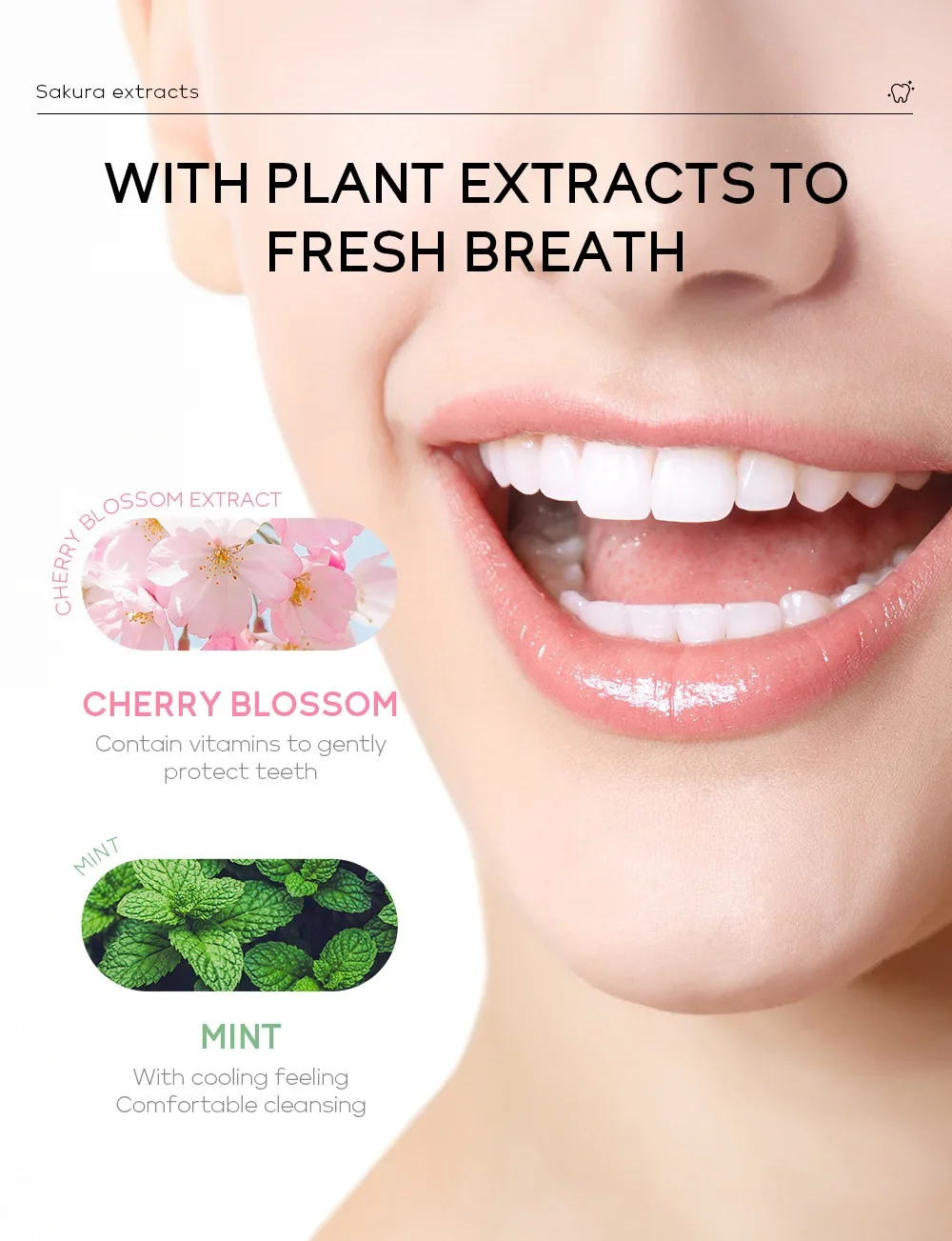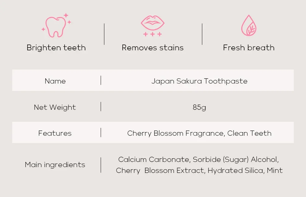 Brighten Teet、Cherry Blossom Fragrance、Clean Teeth、Clean dental stains 、Rduce mouth odours、Fresh breath