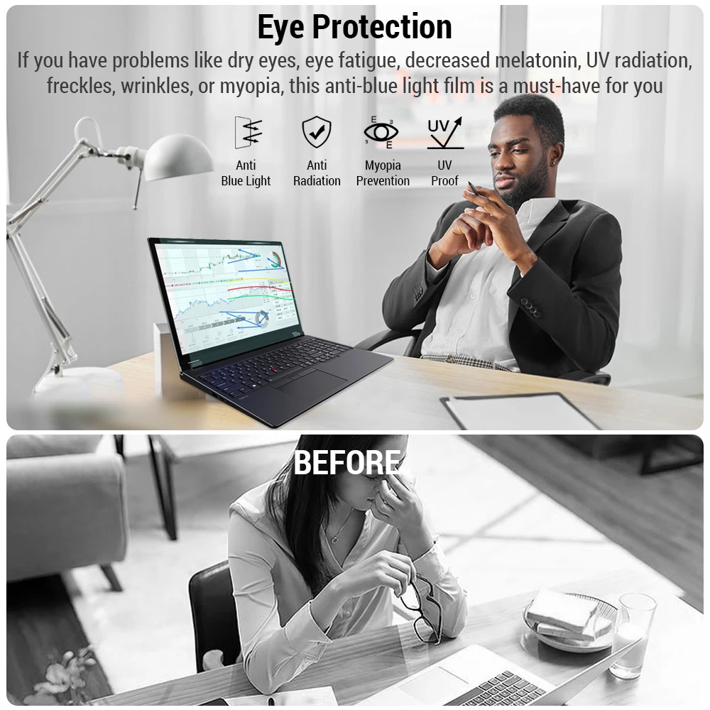 Eye Protection: If you have problems like dry eyes, eye fatigue, decreased melatonin, UV radiation, freckles, wrinkles, or myopia, this anti-blue light film is a must-have for you.