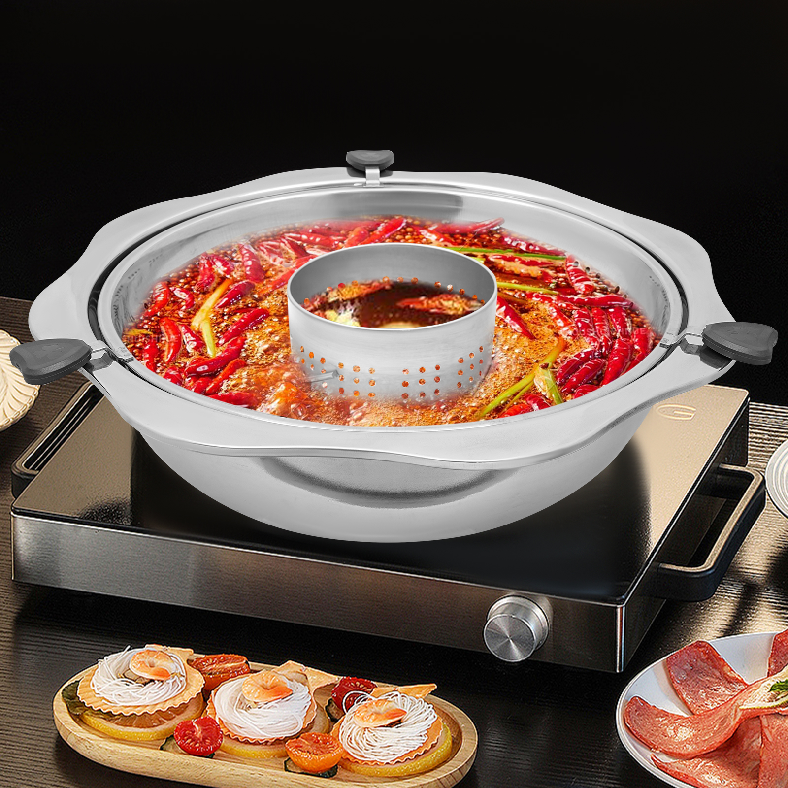 Are you looking for a practical, yet affordable hot pot? Look at our hot pot. This hot pot is made of safe and durable stainless steel and comes with a unique lifting function and large capacity. It is suitable for various stoves and can be used anywhere. We sincerely invite you to experience its endless charm together and embark on a journey of delicious food!