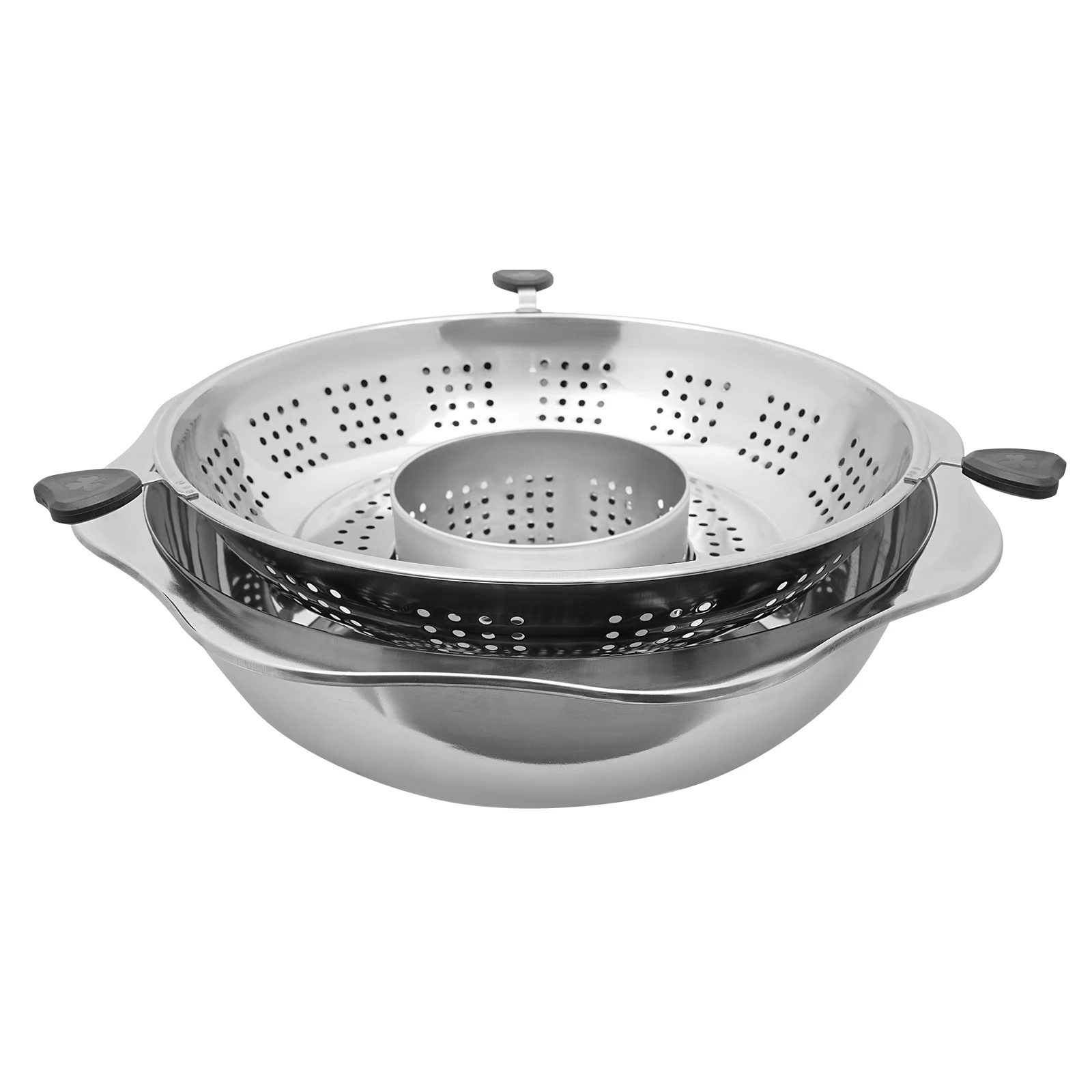 Welding Process: The small pot in the middle is firmly connected to the pot body through welding technology, so you don’t have to worry about the seasoning leaking out of the filter.