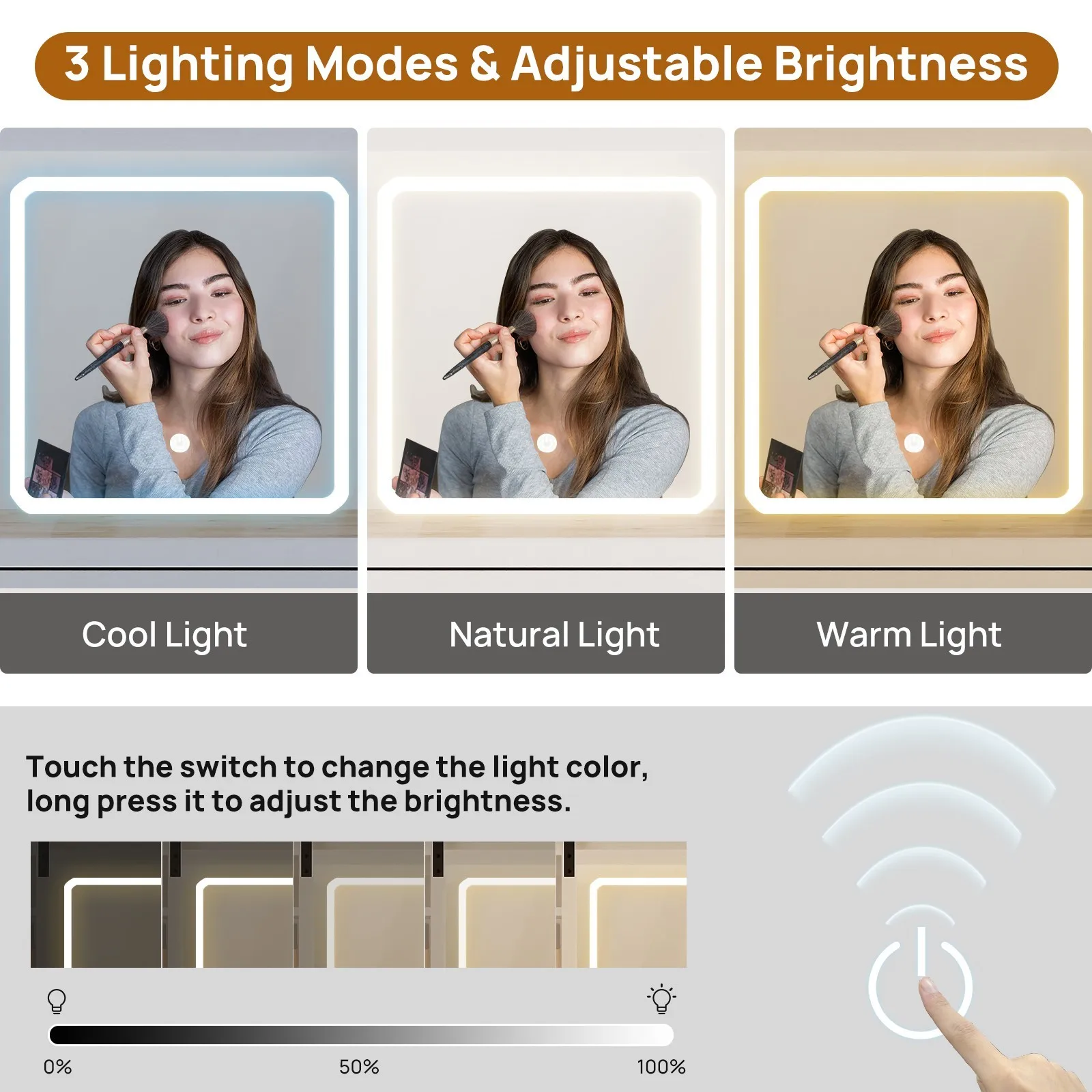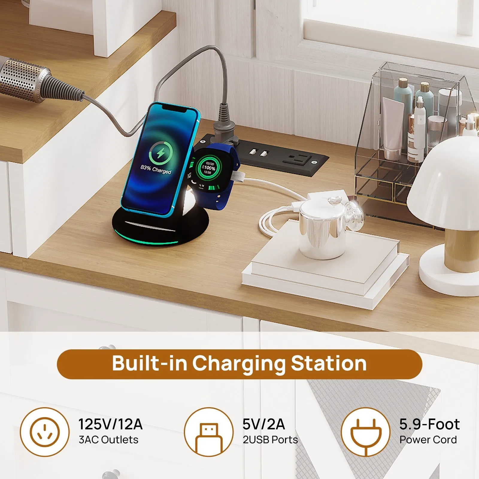 Large Makeup Vanity Desk Set with Mirror & LED Light, Vanity with 5 Drawer