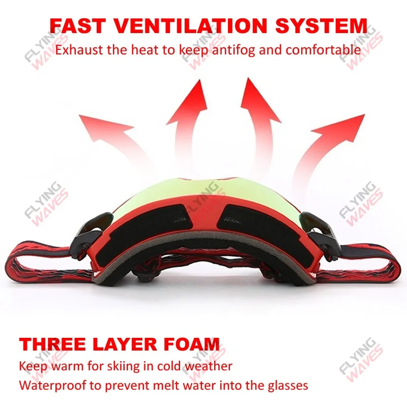 【REVO Lens & Two Way Venting System】The professional snowboarding goggles is coated by full REVO lens. The ski goggles full REVO lens is bright colors, and looks cool in snowfield. REVO coating lens snow goggles provides increased visibility in skiing or snowboarding. Triple-layer high density and soft sponge to keep your family warm and two-way venting system to exhaust the heat to keep antifog and comfortable in skiing or snowboarding.