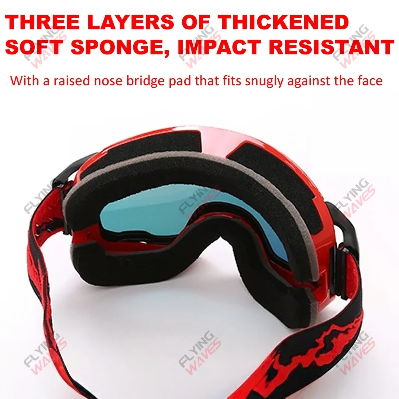 【Elastic Strap & Adjustable Buckle】These skiing goggles to stay well on the ski helmet. And fully adjustable buckle strap double guarantees the goggle will not slide off even in the most extreme ride. High density woven strap with great elastic and superior sponge covers your face and gives you a snug fit, you would feel no impression on your face and not tightand.
