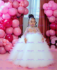 Layered Flower Girl Dress Elegant Tulle Gem Sequin Long Sleeve Fluffy Princess Kids Birthday Gift Ball First Communion Gowns