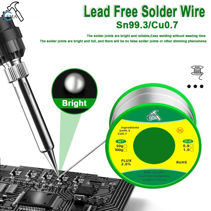 * Solder wire with Sn99Cu0.7, which is good for high end electronics soldering with great electrical conductivity