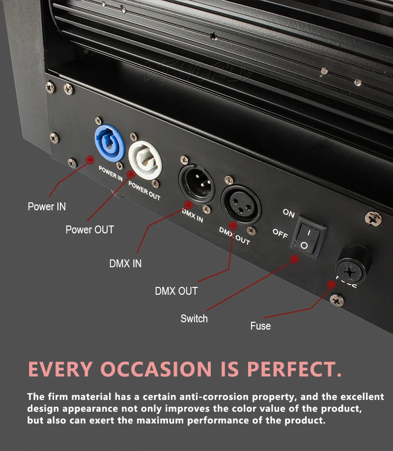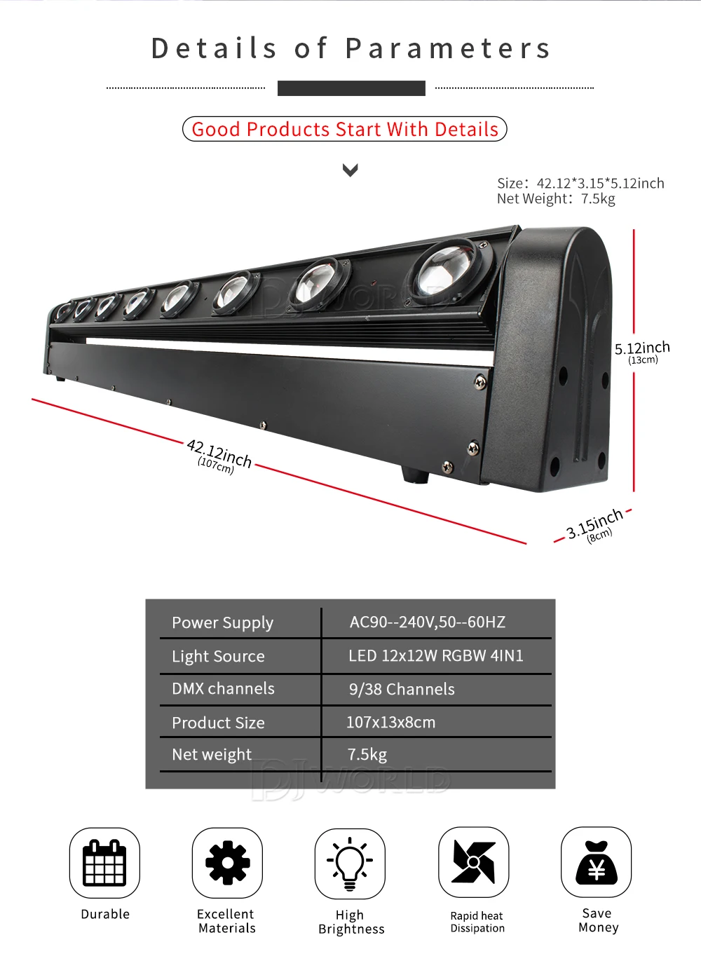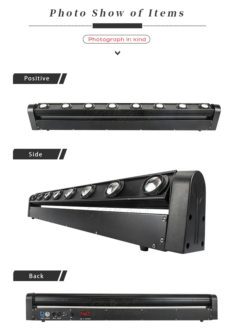 * LED light source: LED 8x12W RGBW four in one, red light, green light, blue light, white light and various mixed colors