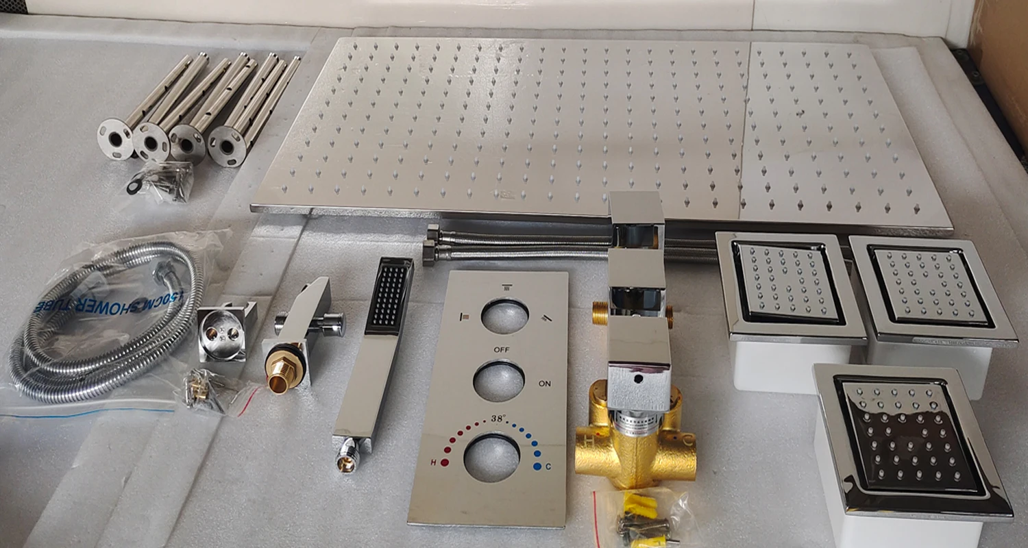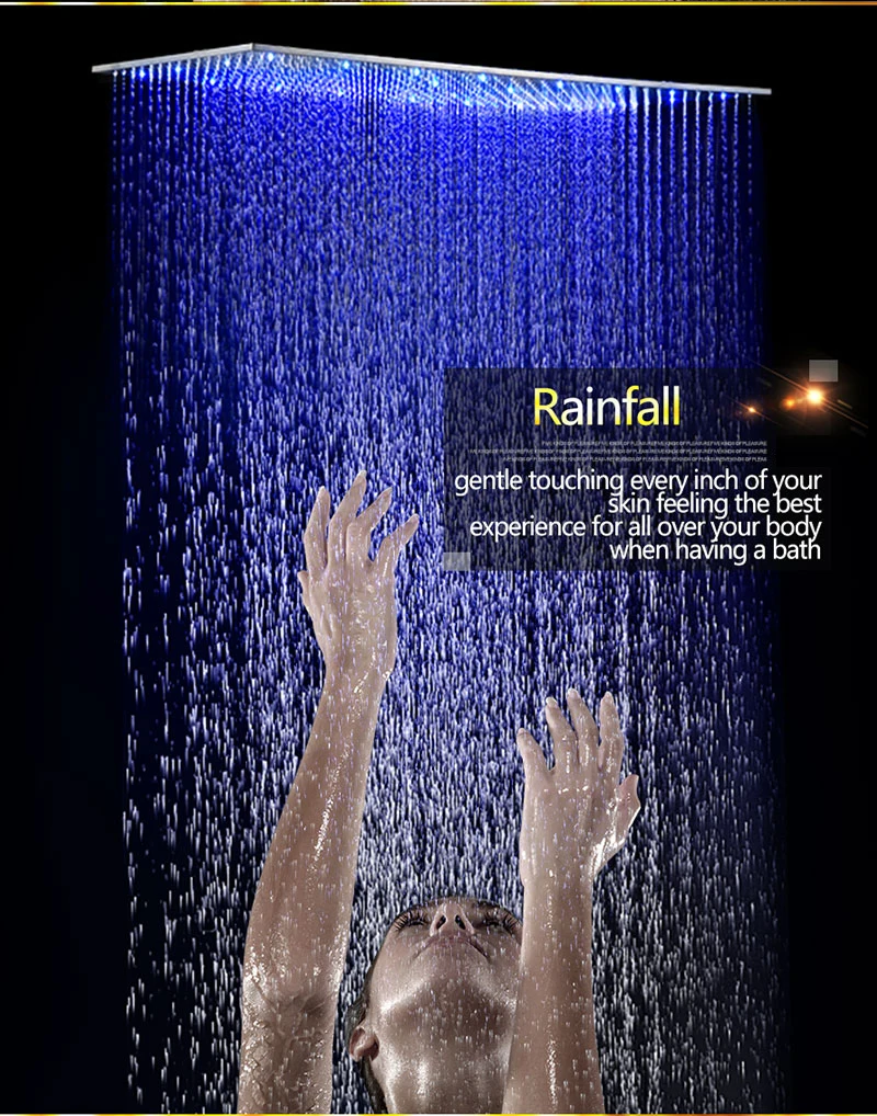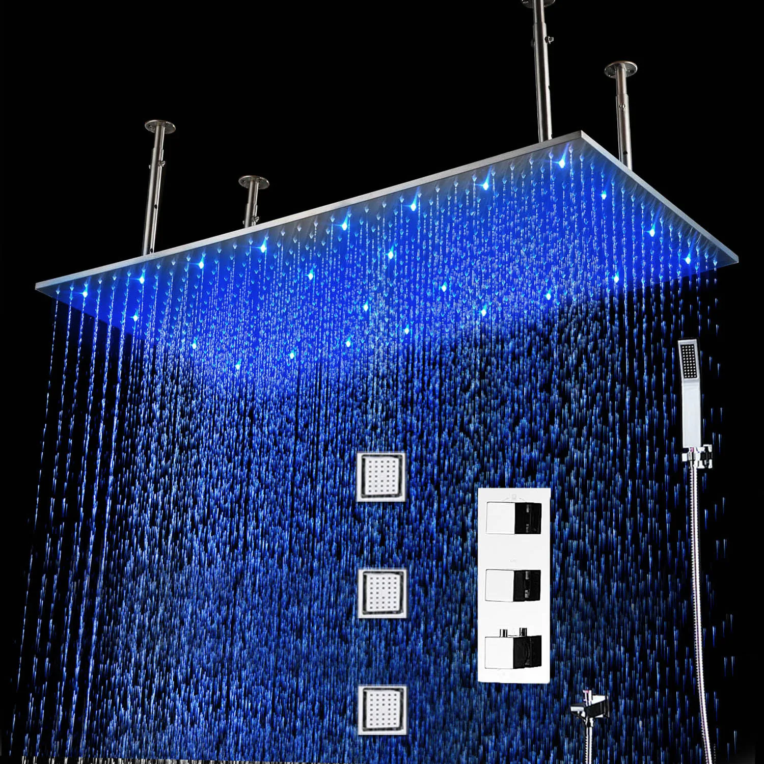 LED Thermostatic Shower Faucets Set Rainfall Ceiling Bathroom System 4 inch body jets Massage 40*80 CM Shower head