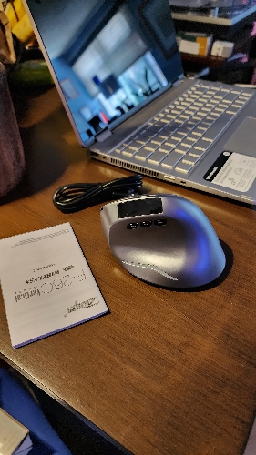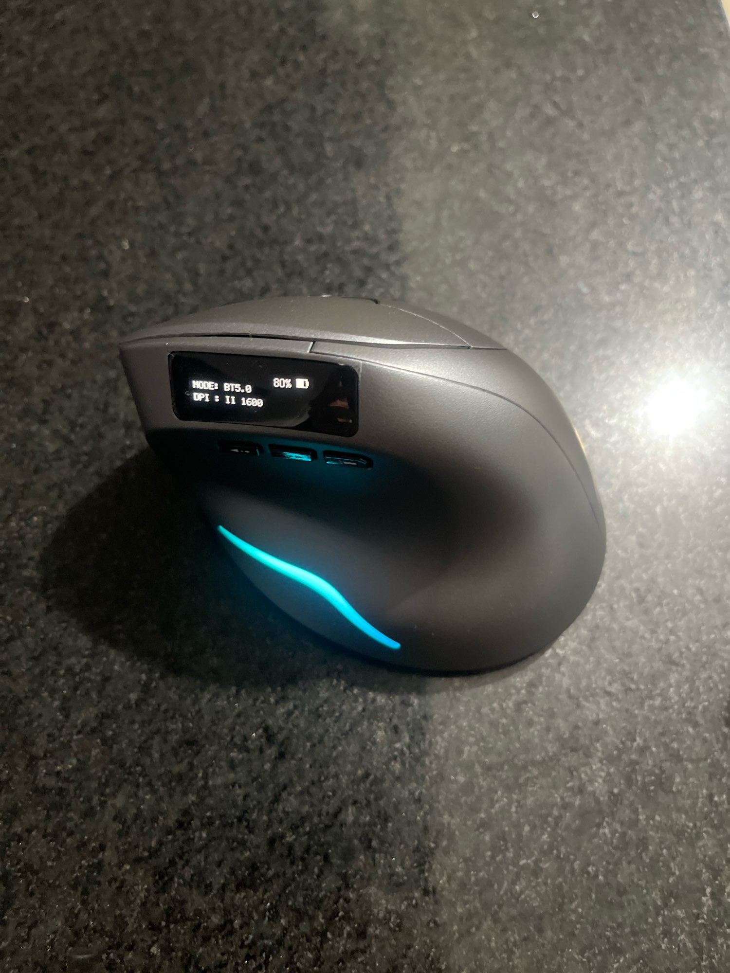 Extremely comfortable mouse, it looks thin and the clicks are very quiet. The screen shows DPI and quantity of battery remaining, a very good product, overrecommend