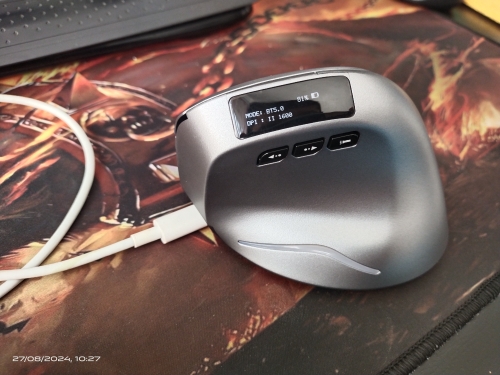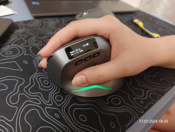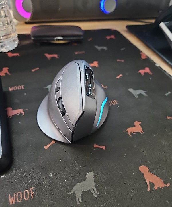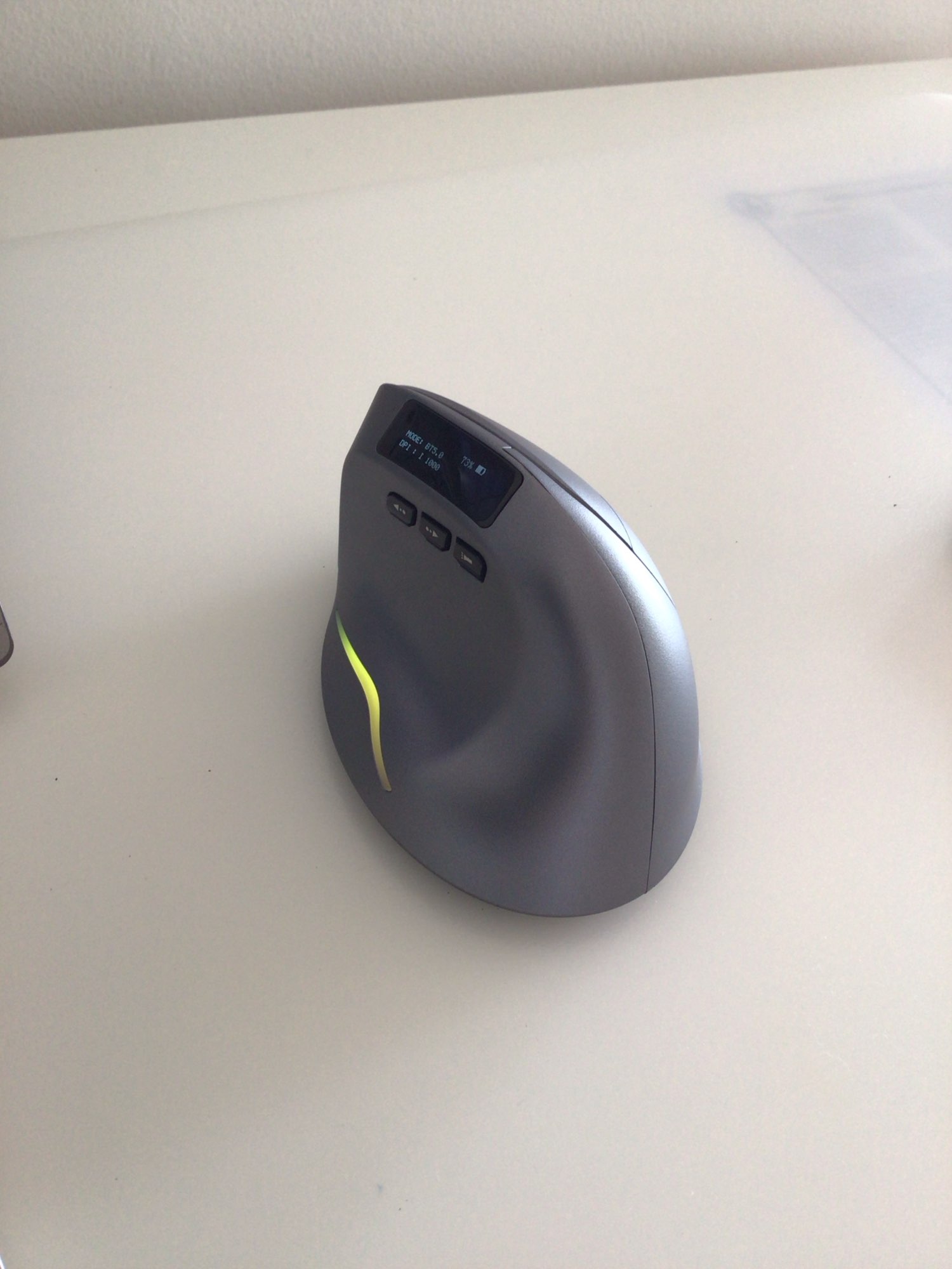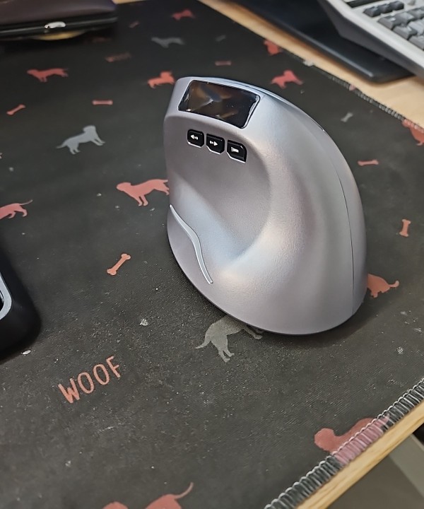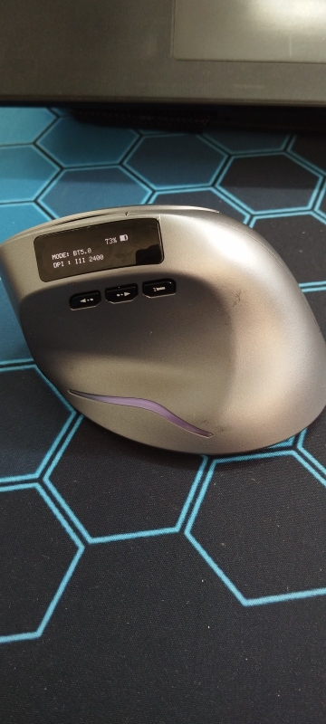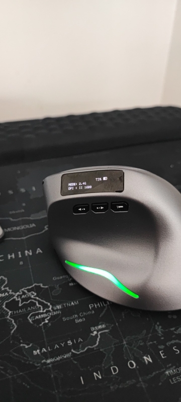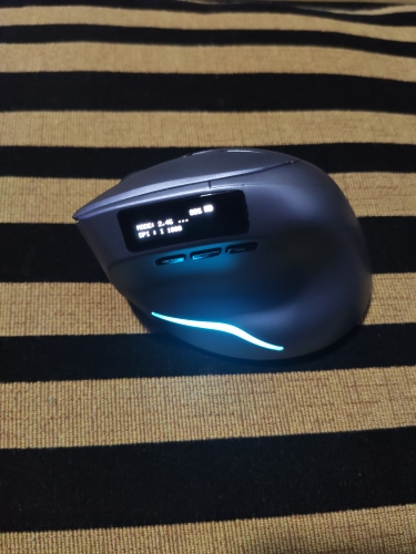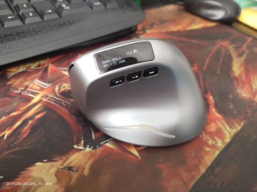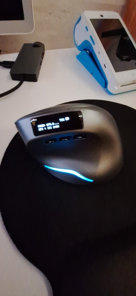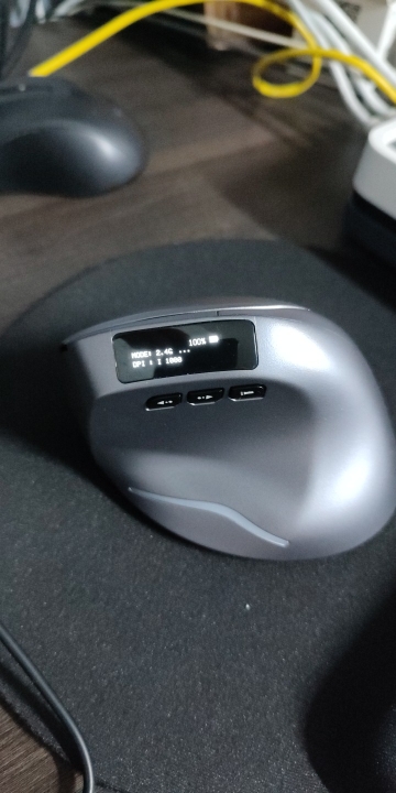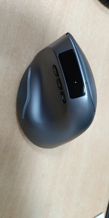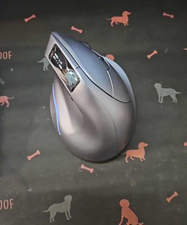 Wireless vertical mouse with OLED screen.