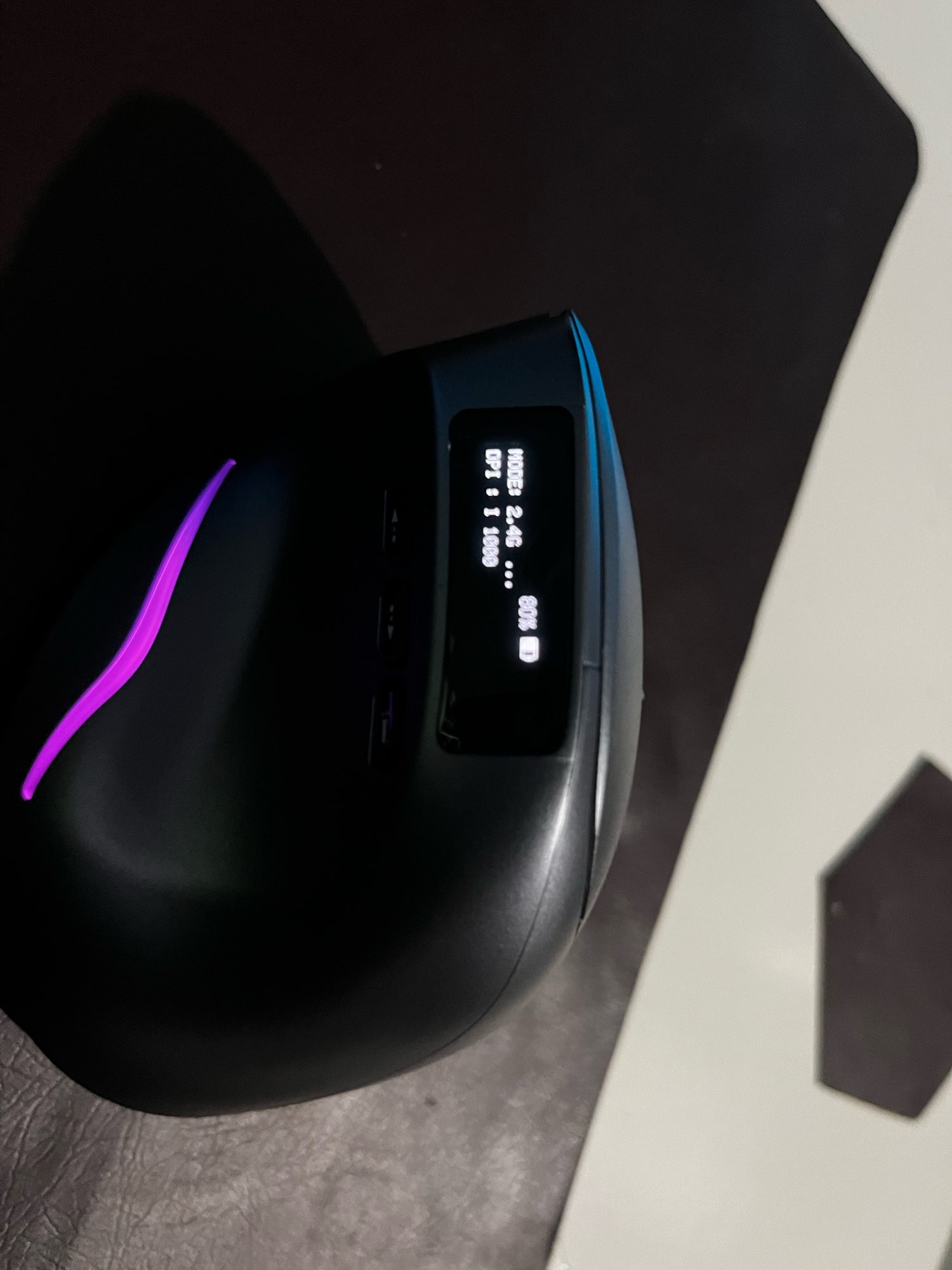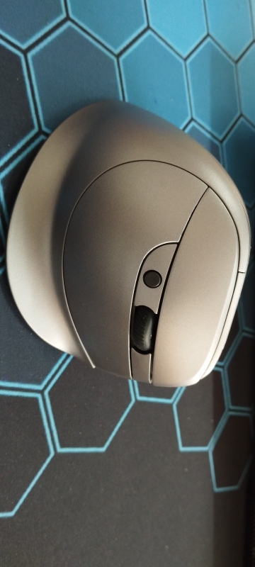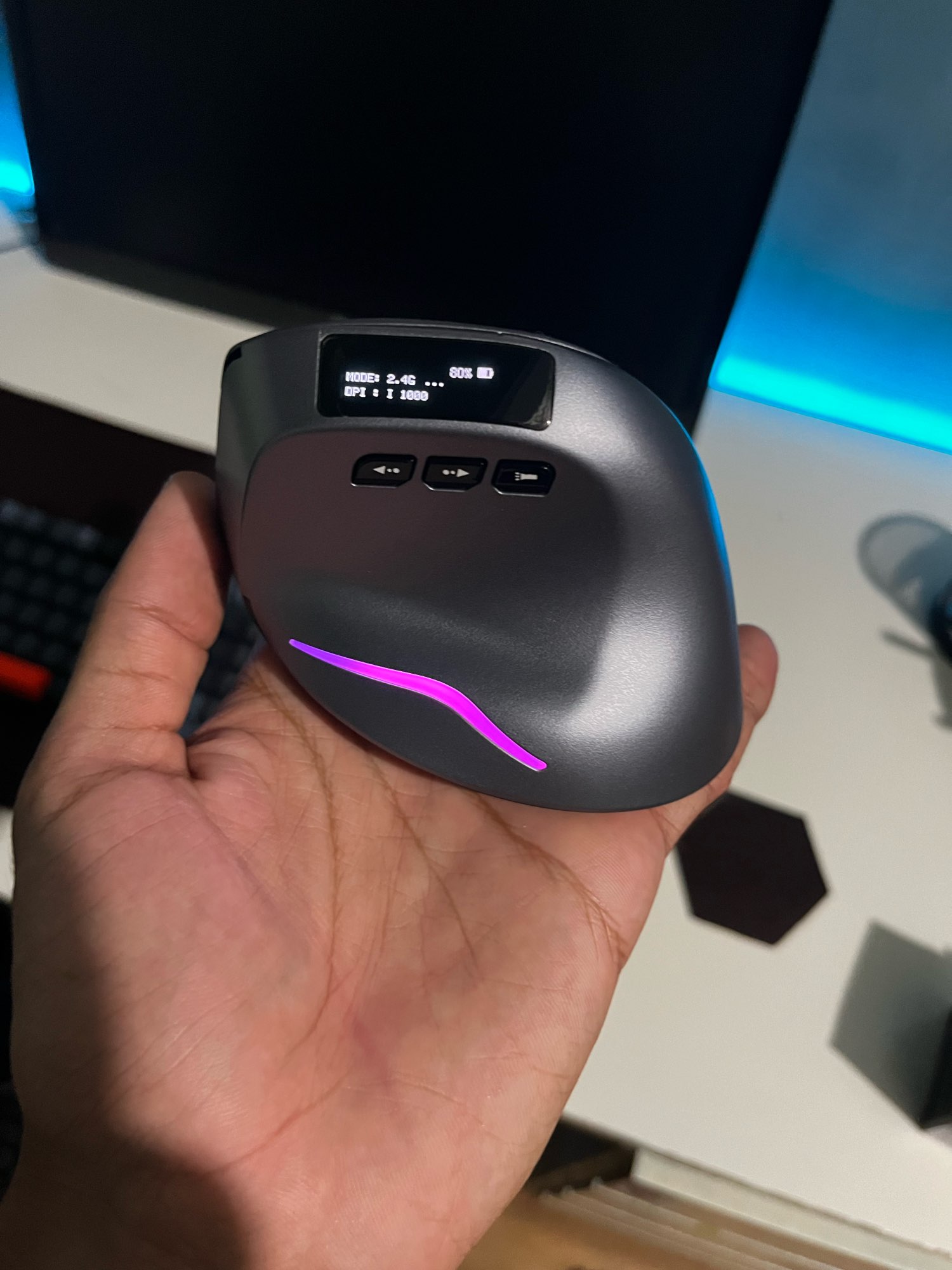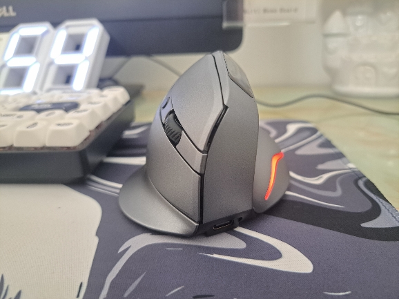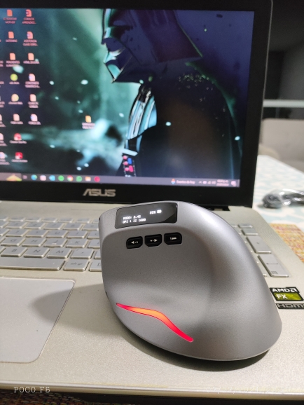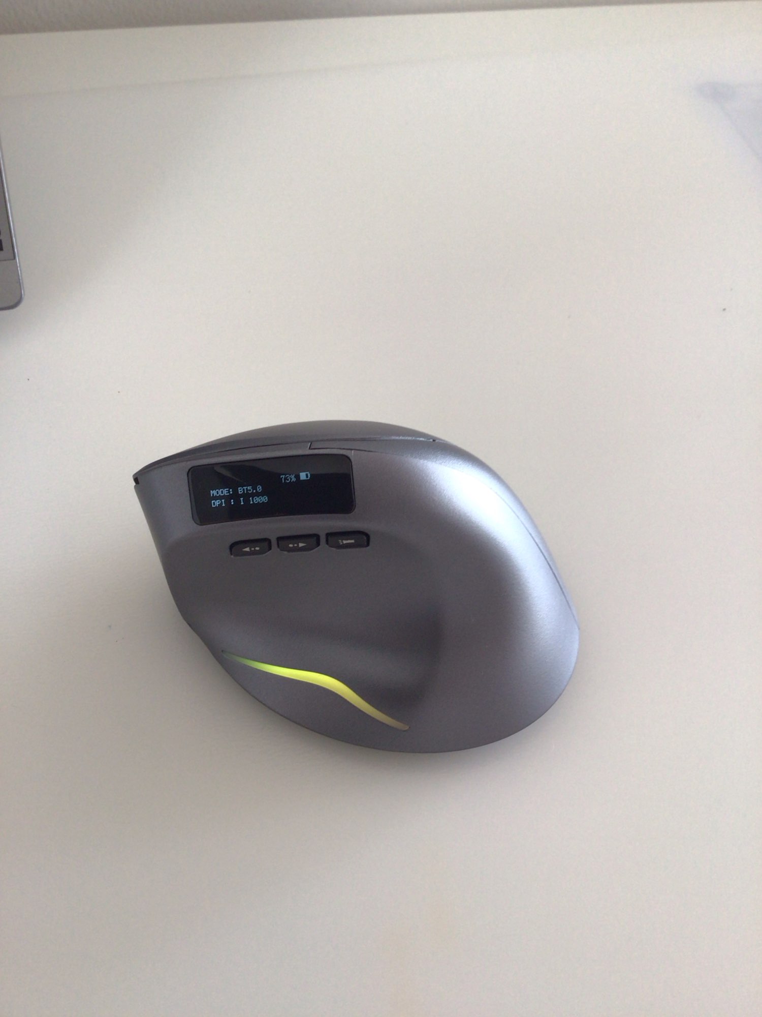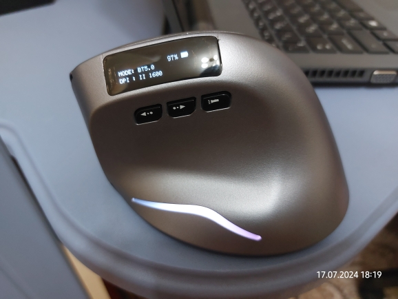 Wireless vertical mouse with OLED screen.