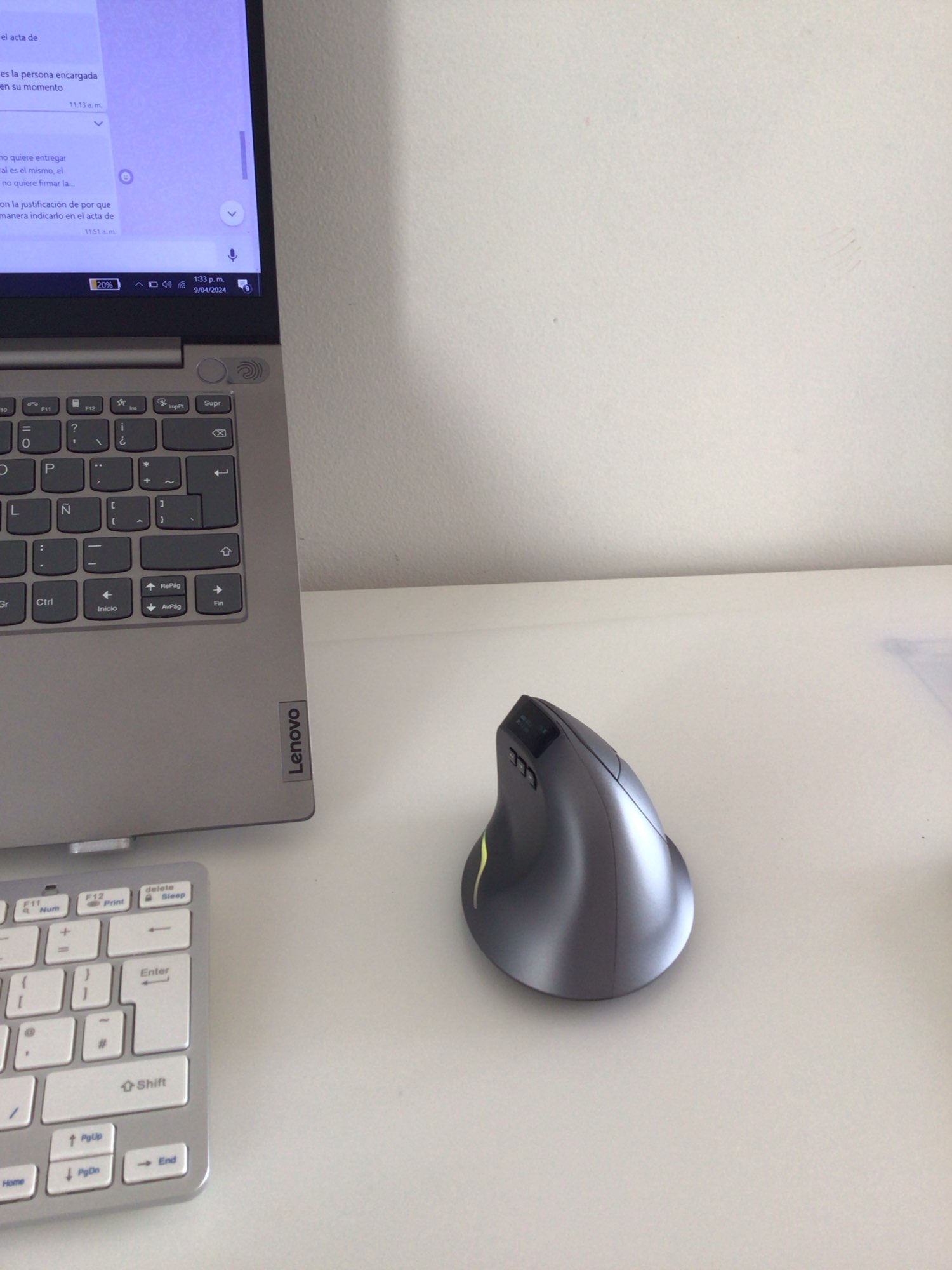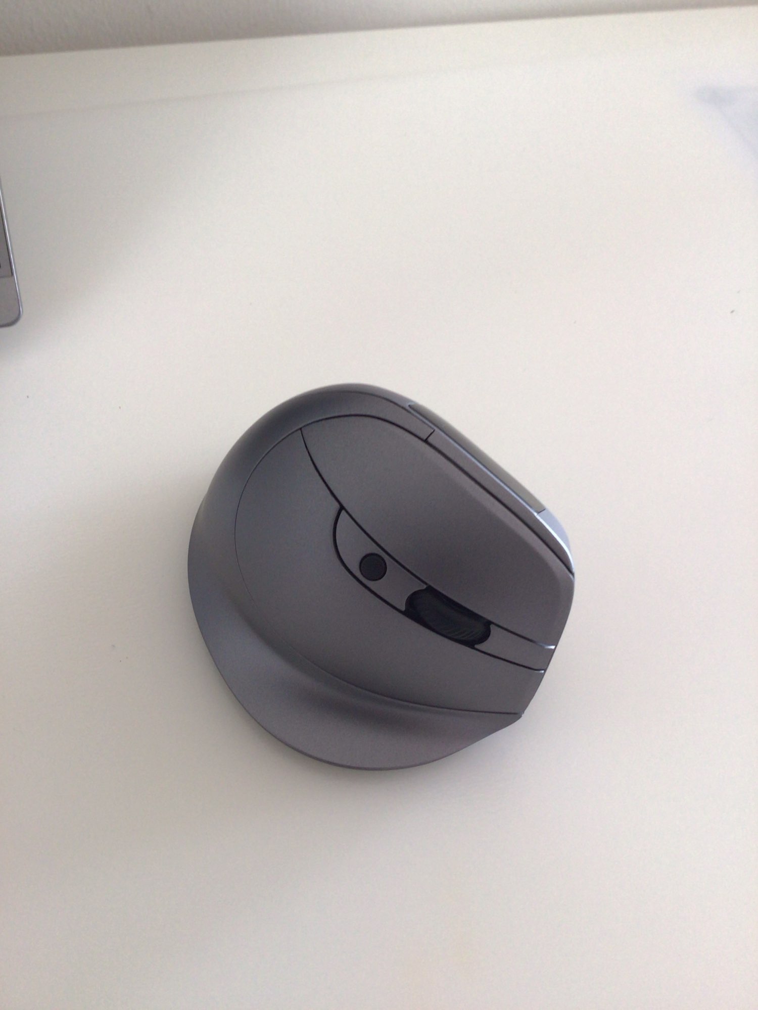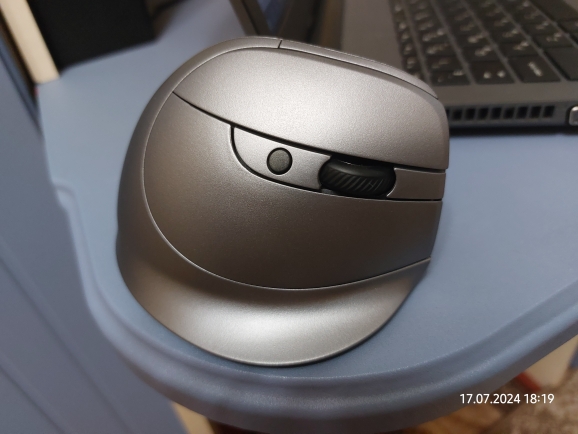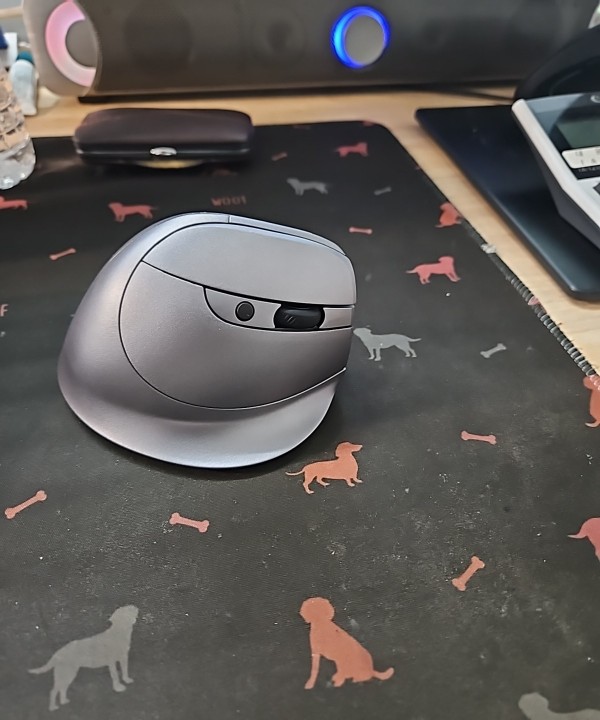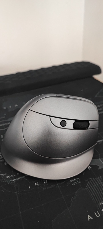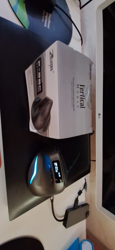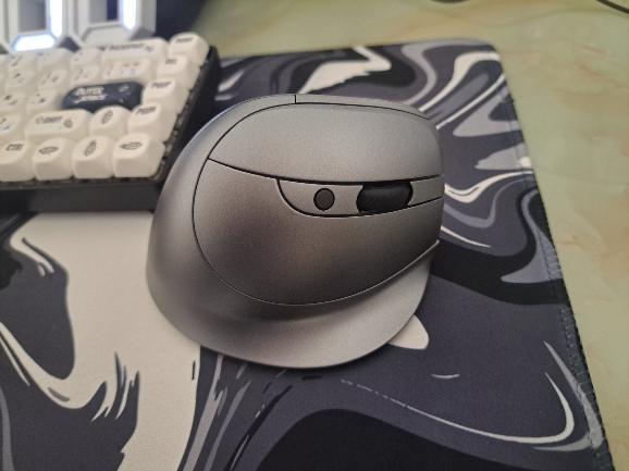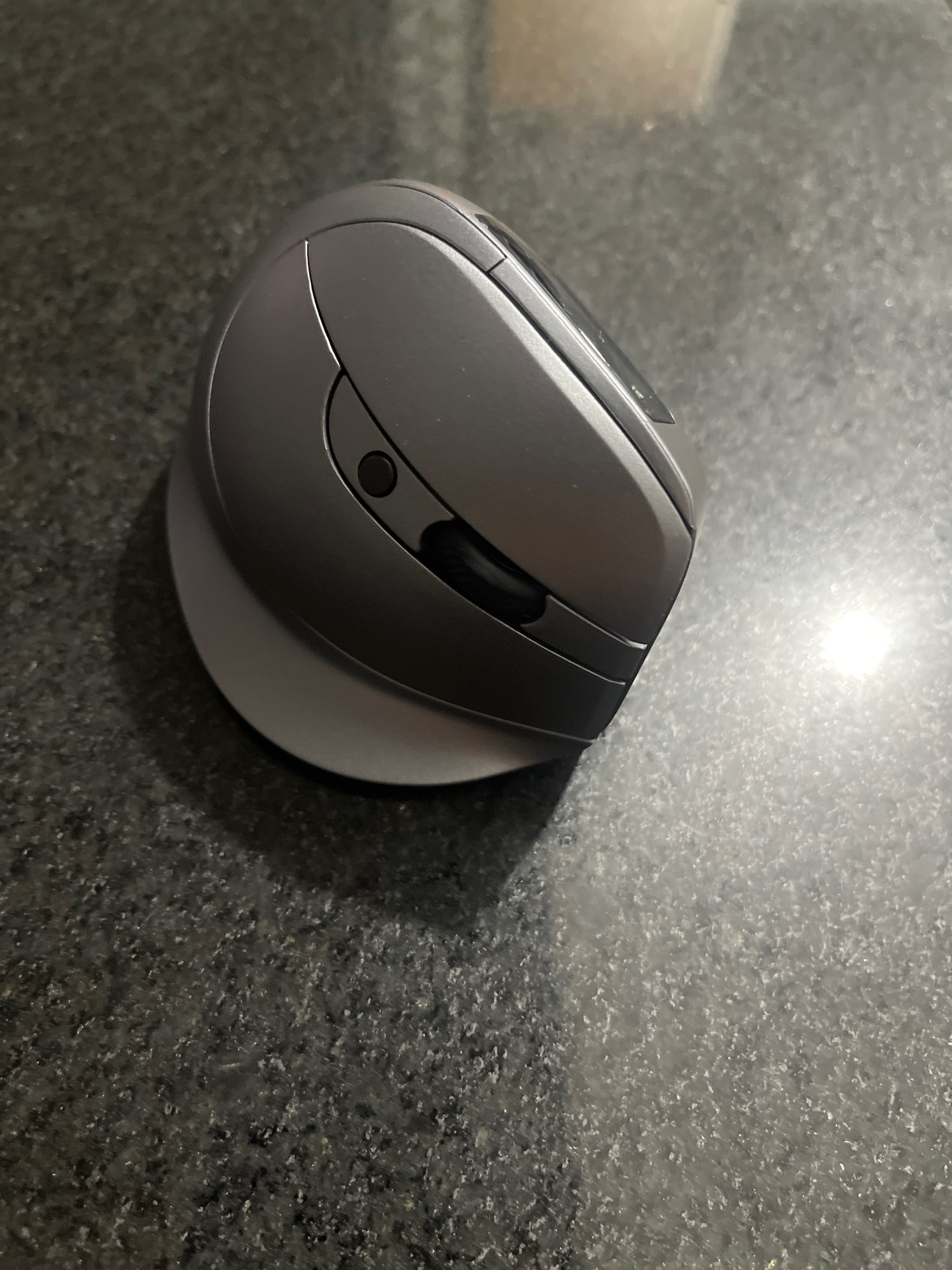 Wireless vertical mouse with OLED screen.