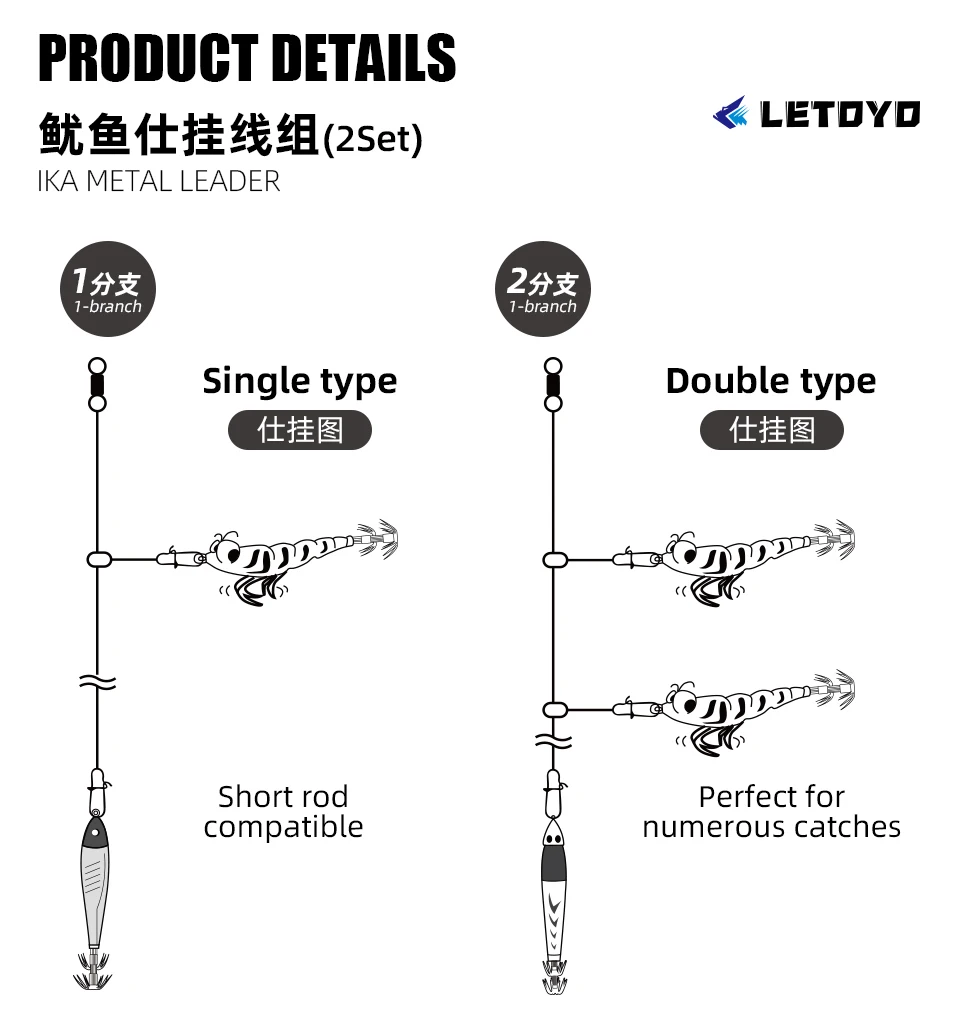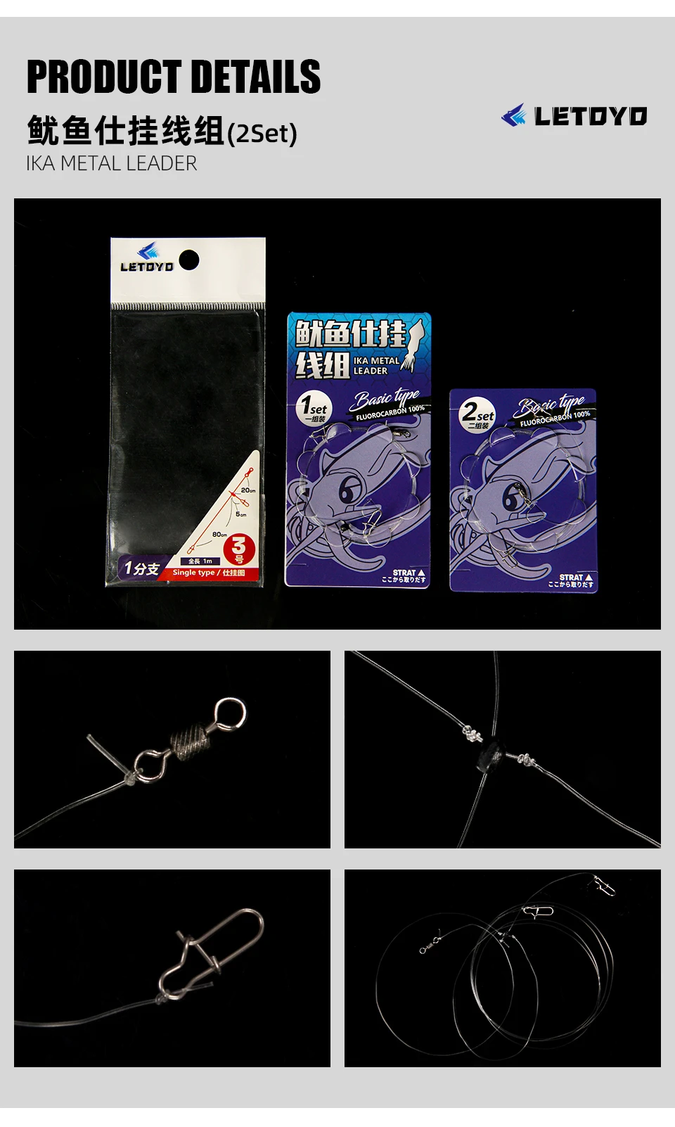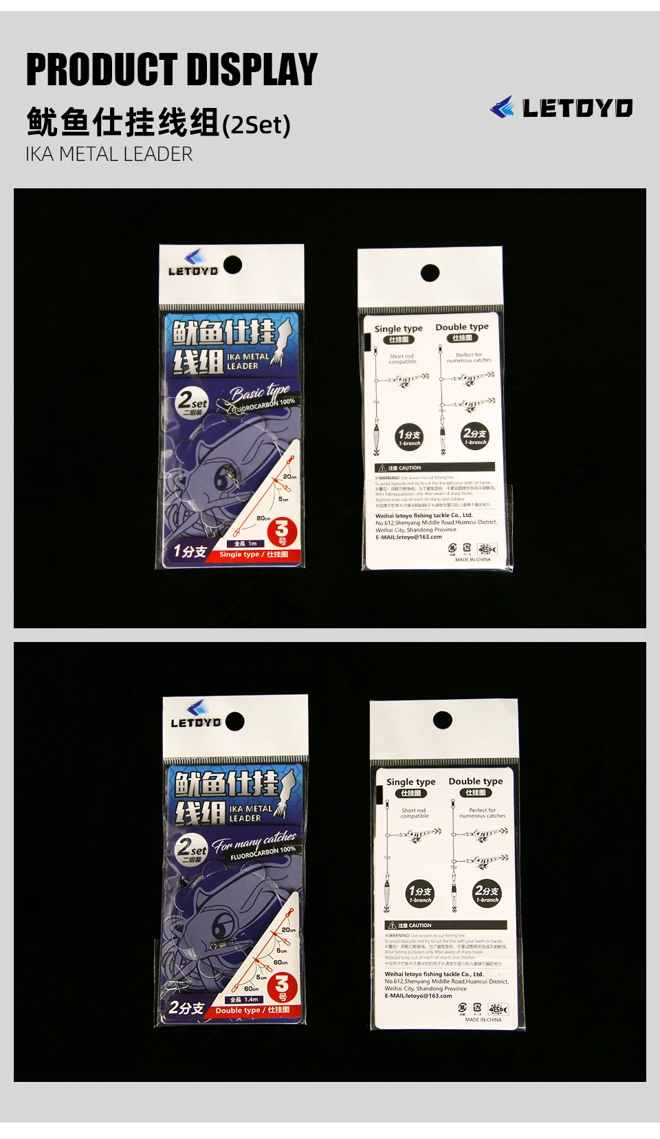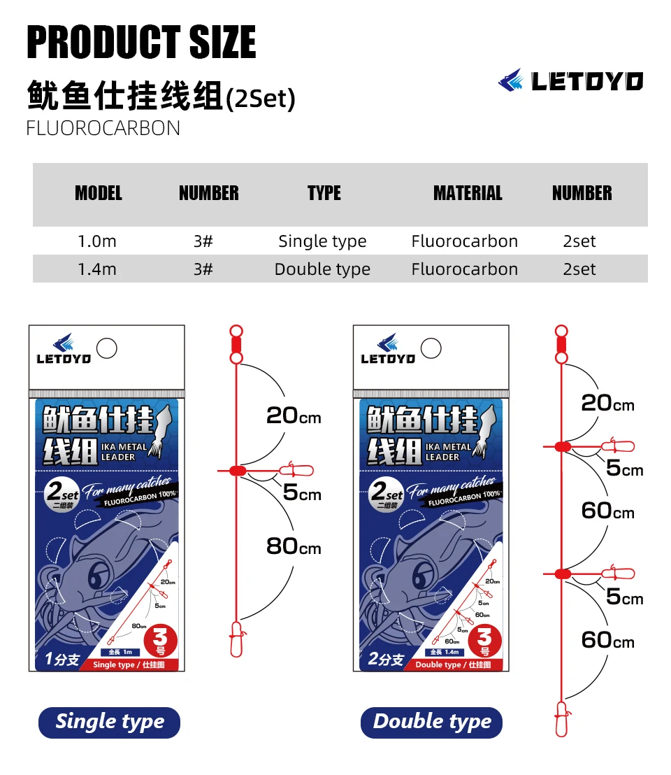 LETOYO 2set Carbon line single double 100cm/140cm Squid fishing IKA METAL LEADER squid jig fishing line sea fishing accessories