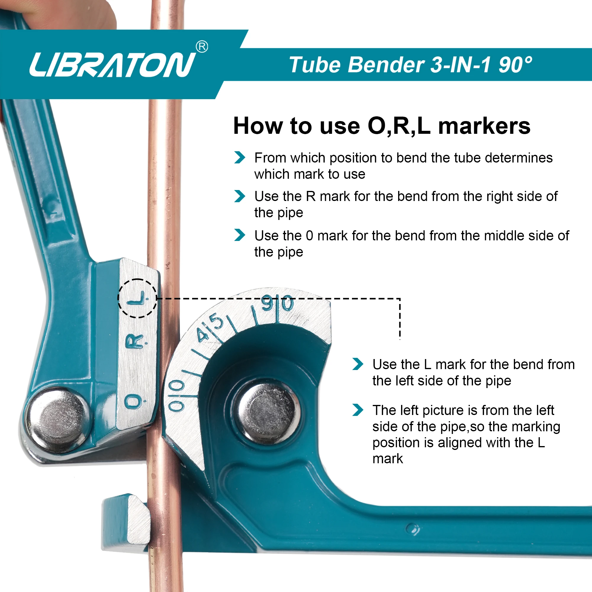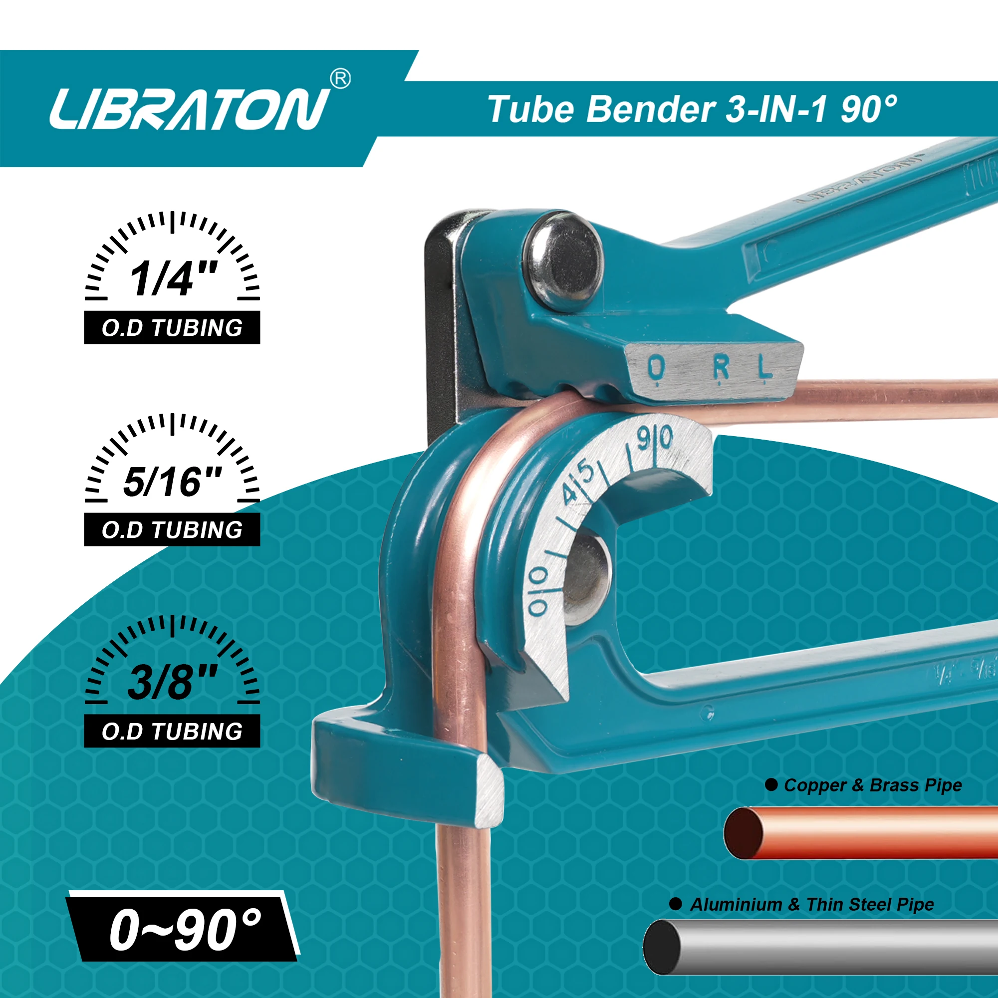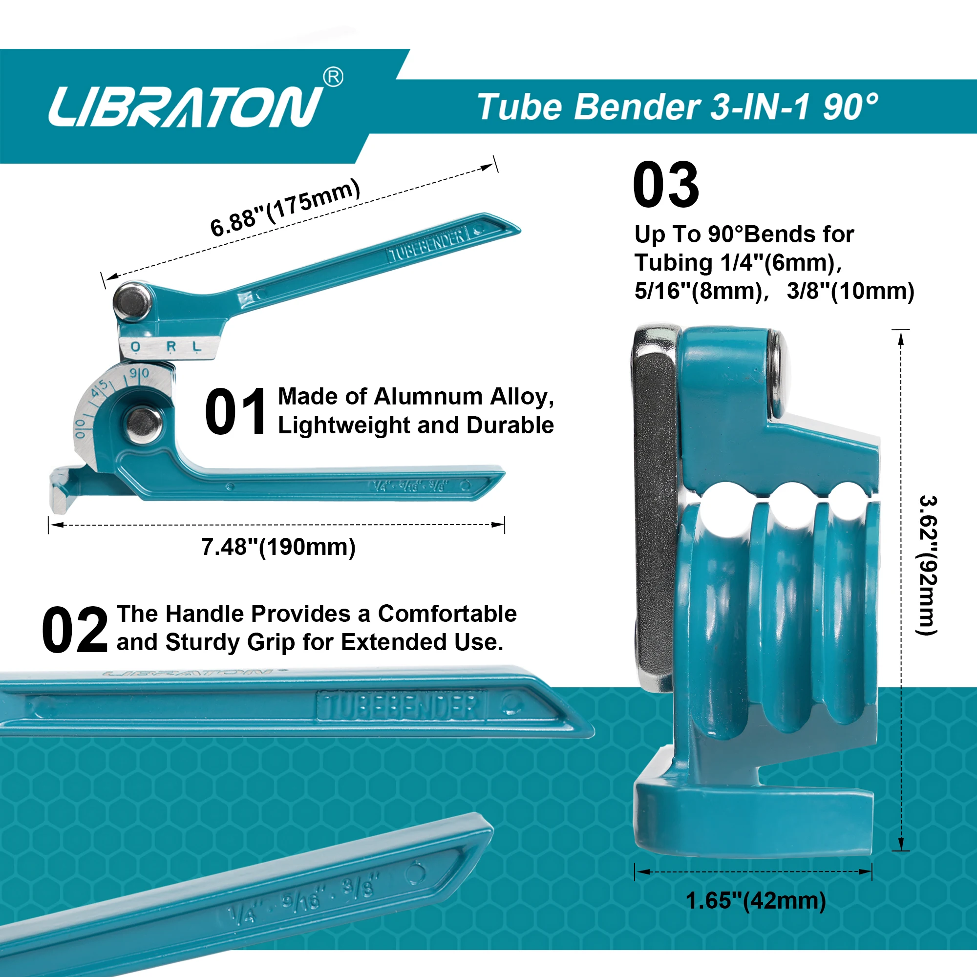 LIBRATON 3-IN-1 90 Degree Mini Hand Manual Tubing Bender for 1/4″(6mm) 5/16″(8mm) 3/8″(10mm) Copper Aluminum and Brass Pipes