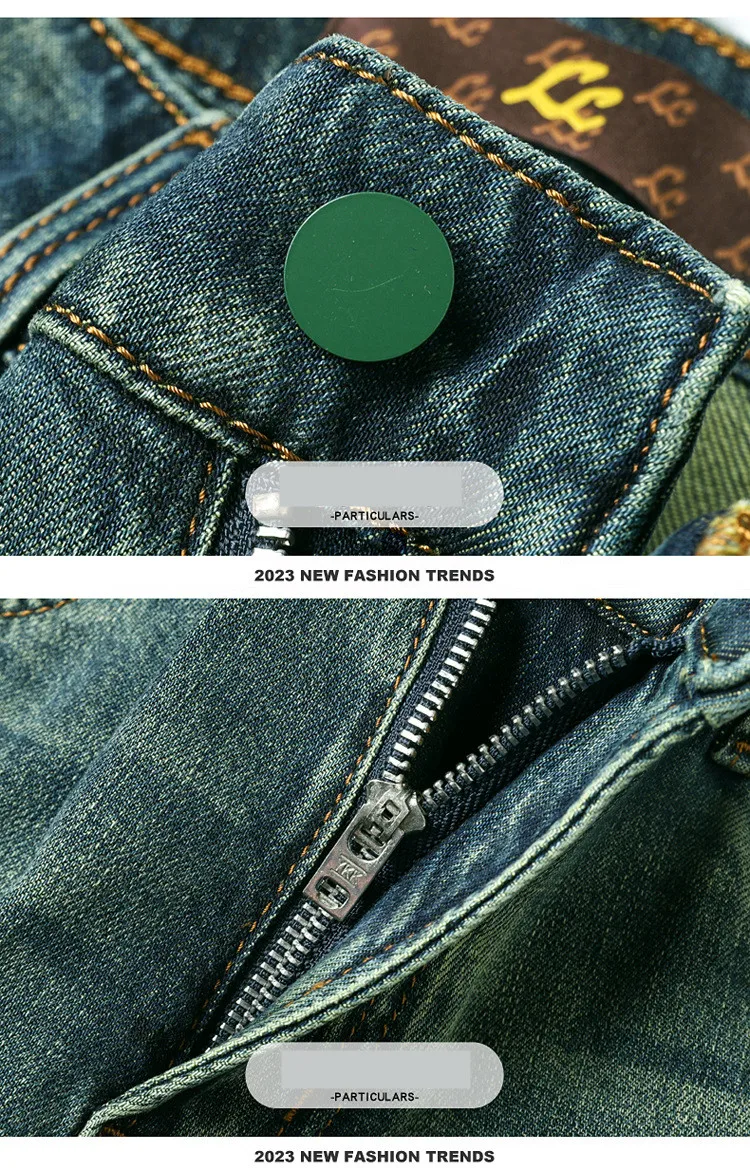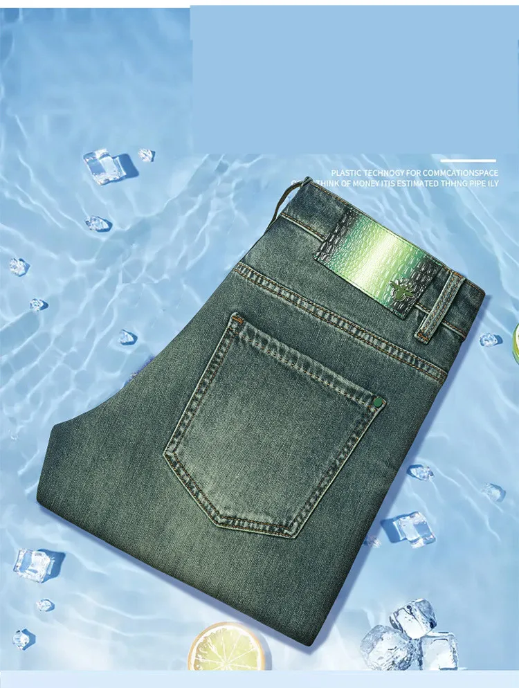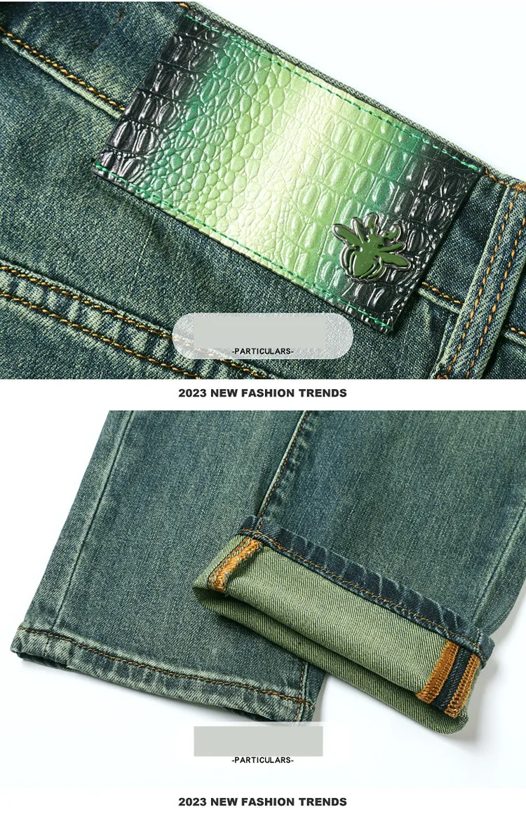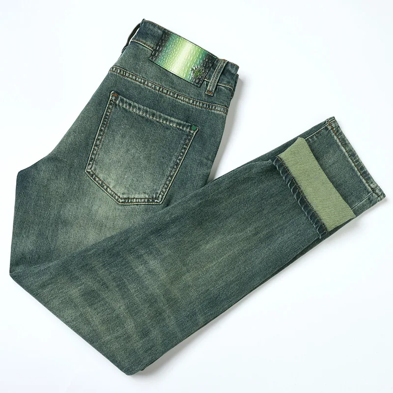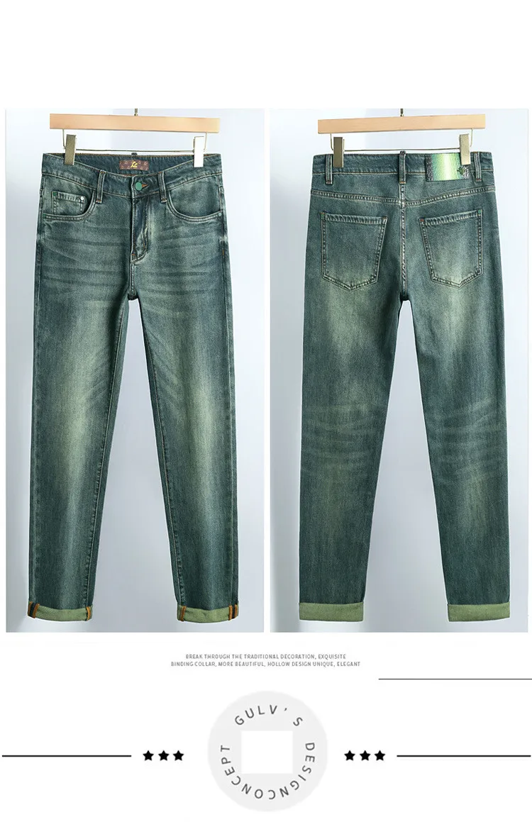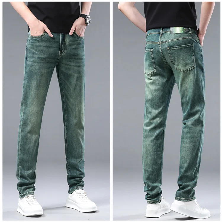 Light Luxury Men’s Clothing Fashion Trends Green Washed-out Vintage All-Match Stretch Slim Casual High-End Jeans Men