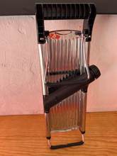 Works just fine and happy with purchase. Very sharp blade, so be careful!! Folds flat, and that helps with my smack kitchen.