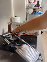 Another product that arrived super fast. In the middle of the estimated time. I already used it a couple of times and it goes great. Cheese, potatoes or onion cuts them very well. They say it is big but it is not so big either. I wanted a good and resistant one and this one is. For the price, which wanted the most expensive in addition, it is very good. The only but it is that the gossip to grab does not leave the base and when you cut potatoes the last part you have to do it by hand. Otherwise I already say great.