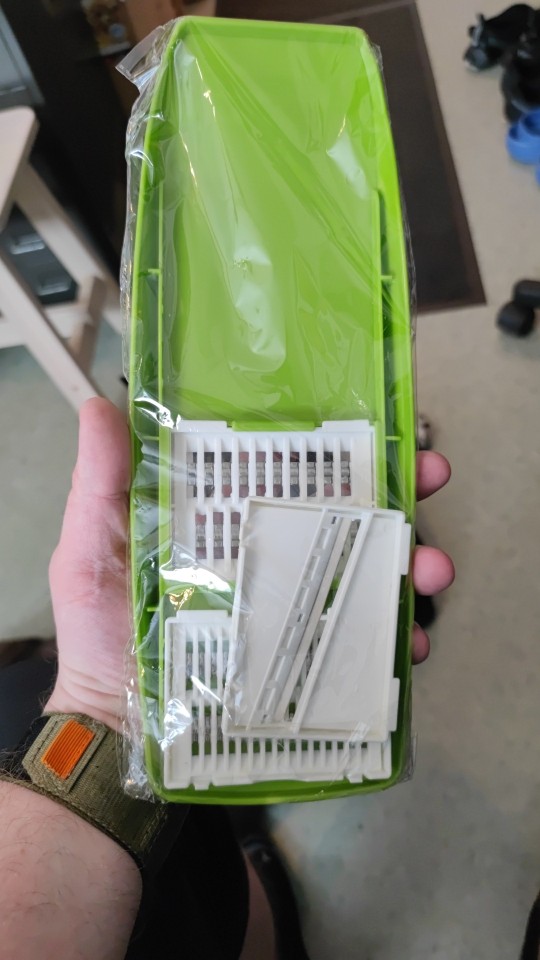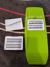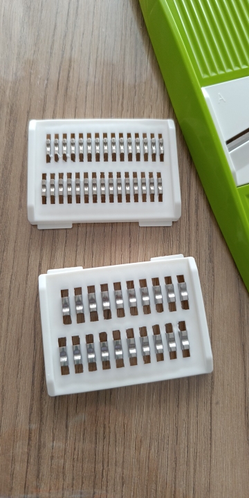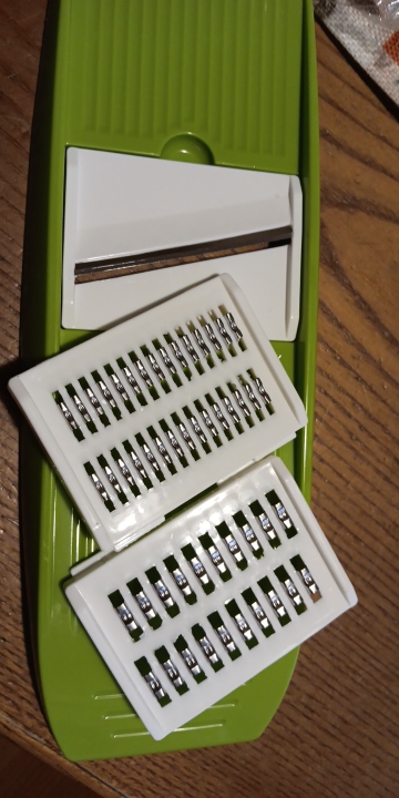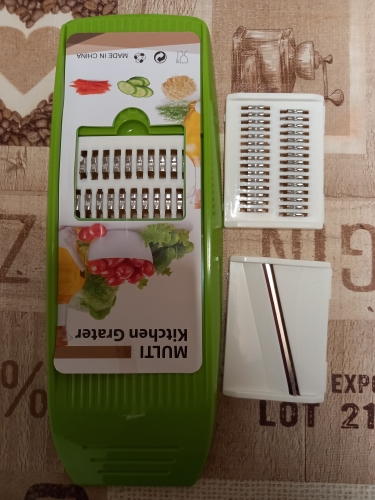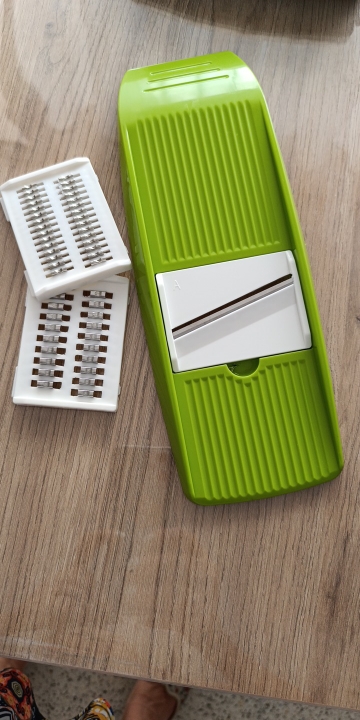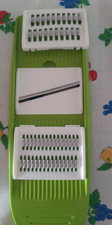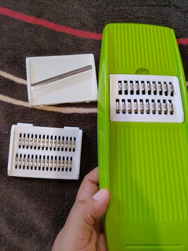 a very nice slicer, I only tested it on cucumbers and it slices great, the slices come out perfect, neither too thin nor too thick, I don't know how the other grates grate so I don't want to say anything, but it's perfect for cucumbers, I highly recommend this product