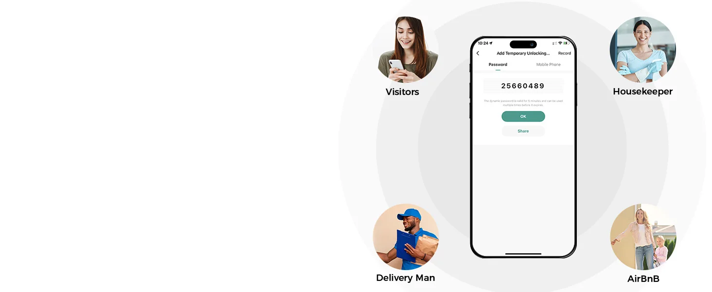 Keyless Entry Door Lock with App Control offers seamless access via fingerprint, app, password or backup key, plus the convenience of temporary passwords, ensuring security and flexibility for modern living.