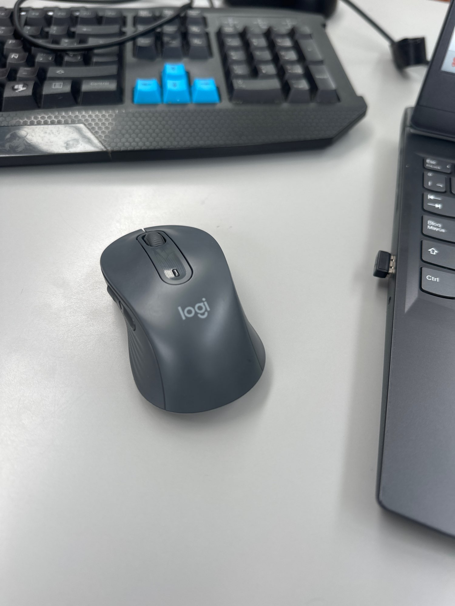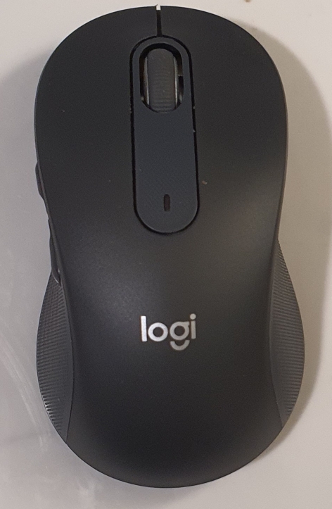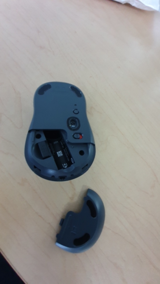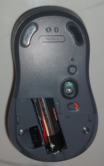 Logitech m650l mouse. It's a little big, and the battery has one AA size. Bluetooth method or USB recognition key. It's not like the UNIPAR way. The reaction rate can be controlled.