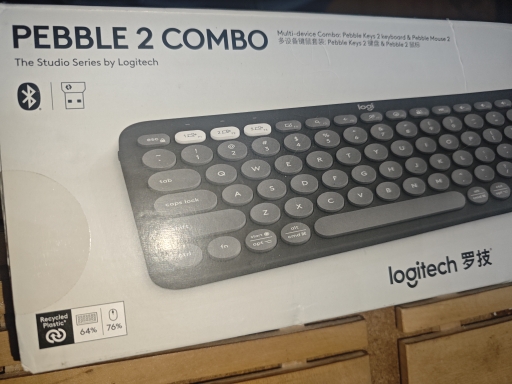 -Slim, lightweight, minimalist design made with recycled plastic 1Pebble 2 Combo plastic content: Pebble Keys 2 K380s minimum 49% recycled plastic and Pebble Mouse 2 M350s minimum 58% recycled plastic, excluding plastic in printed wiring assembly (PWA) and packaging.