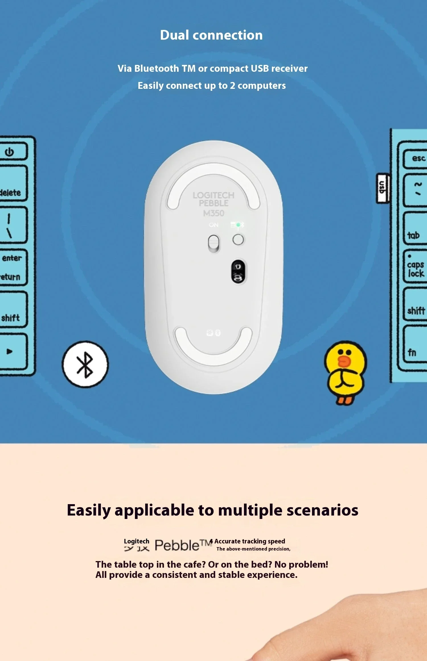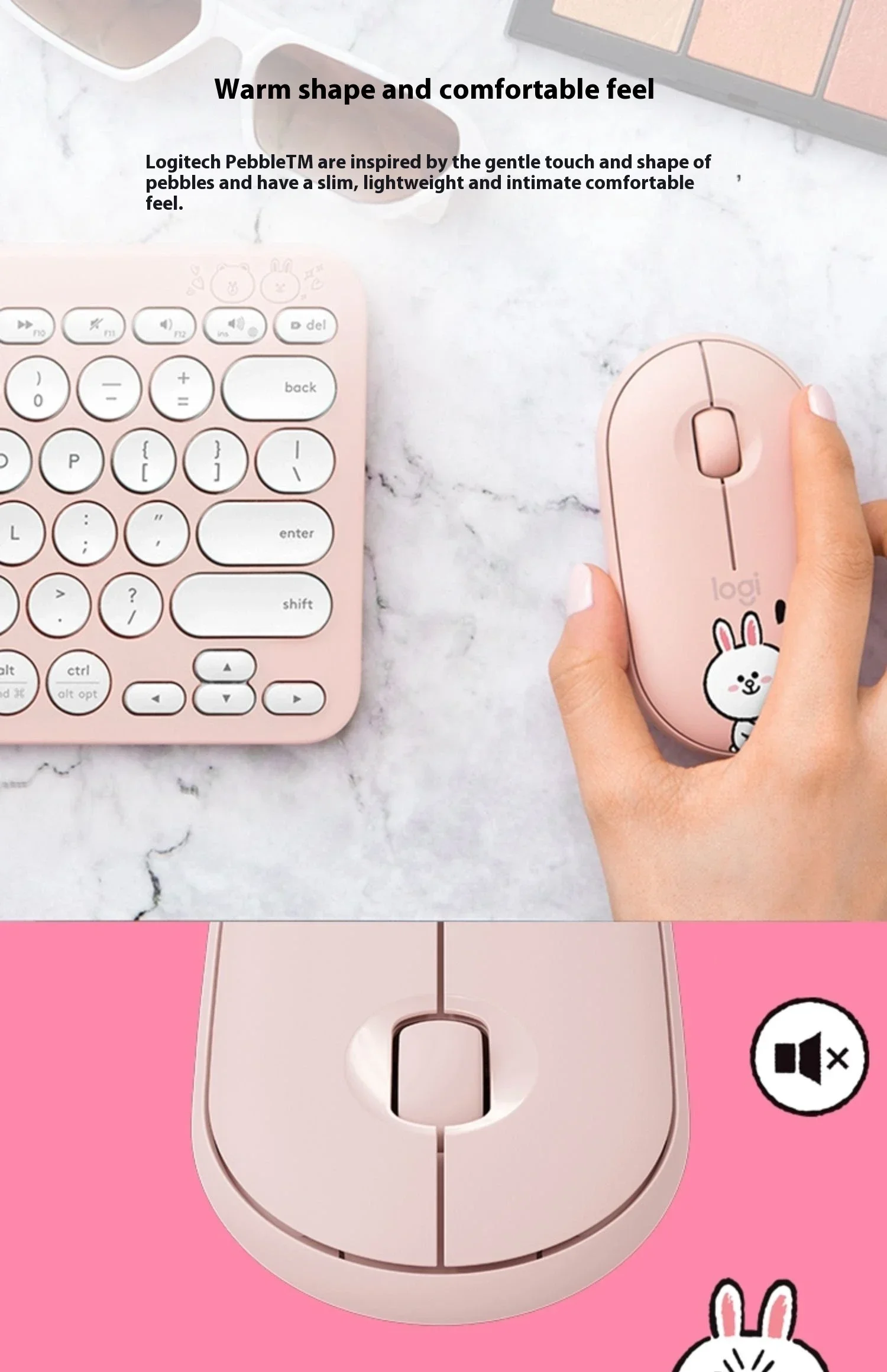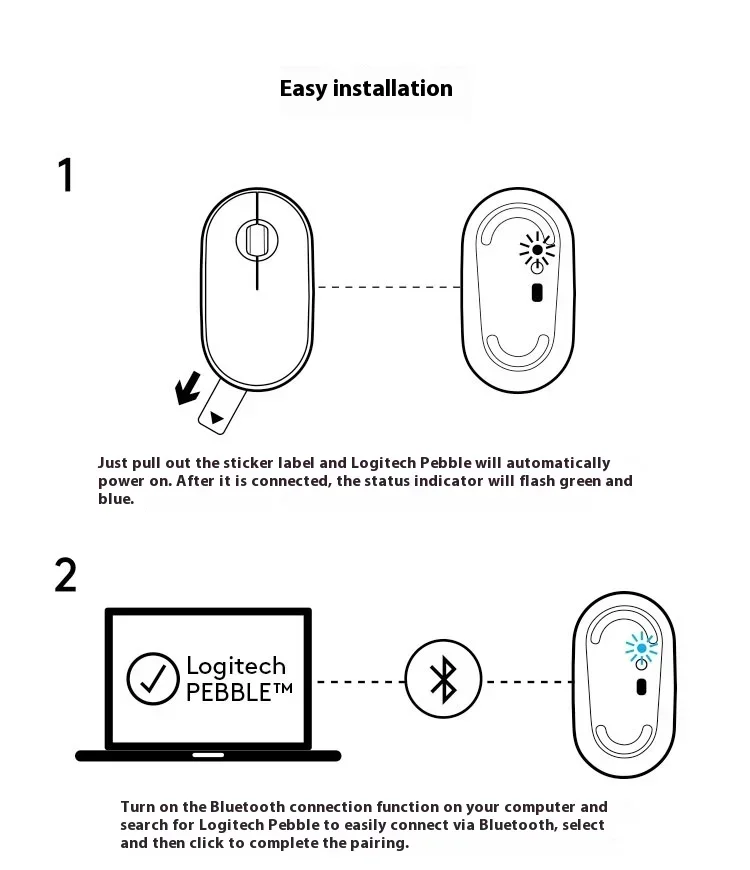 Logitech Pebble Wireless Bluetooth Mouse Mouse Mute Ultra Thin Bluetooth mouse Laptop Office Home, white