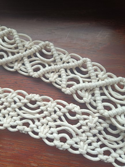 The beige ribbon ribbon is sturdy, but its texture is very stiff, not soft. Looks like a hard, artificial ribbon. The length is suitable for tall people (>1.70cm). It comes with a plastic painting and at the first time it began to be mistreated, so I asked another seller for a metal bra to make it more resistant.