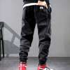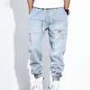 Men Jeans Solid Color Ripped Elastic Waist Casual Student Trousers for Daily Wear