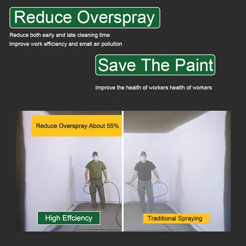 HEA is a low-pressure nozzle, which can be atomized under a low-pressure environment of 60-80kg. The use of low-pressure nozzles can reduce spray splashing and increase the service life of machines and accessories. Long term operation of machine equipment in a low-pressure environment can greatly reduce the wear of machines and greatly improve the project progress. The unique internal nozzle geometry can reduce the atomization pressure of paints, colorants and other materials – achieving outstanding spraying effects under low pressure.