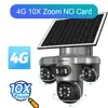 1. Four Lenses & Three screens & 10x optical zoom design, 4G/WiFi solar powered battery PTZ camera