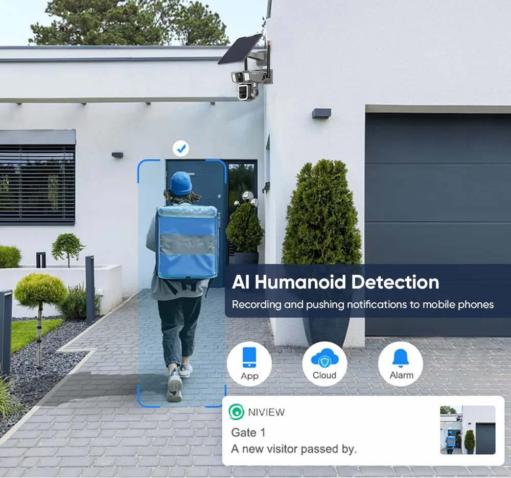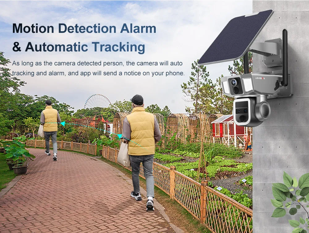 As long as the camera detected person, the camera will autotracking and alarm, and app will send a notice on your phone