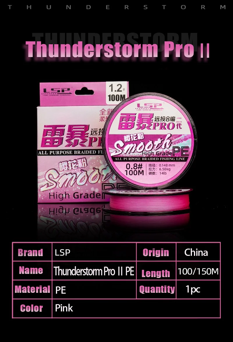 LSP Thunderstorm Pro 2 PE Fishing Line Braided 8 Strands 100-150M 13-30LB Multifilament Line Linhas Pesca For Sea Freshwater