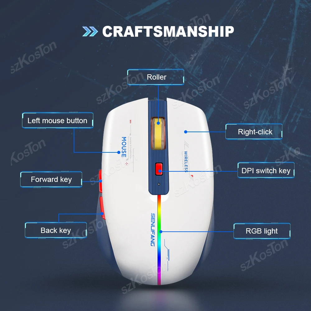 • DPI Adjust Button :Features an adjustable DPI button that allows you to customize the mouse’s sensitivity according to your needs, offering a personalized user experience. Szkoston
