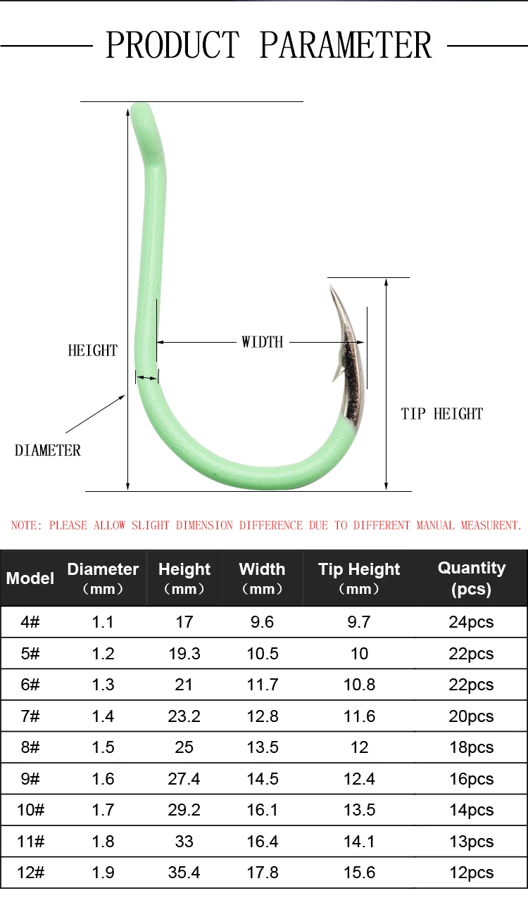 3. Green fluorescent hook, more beneficial for night fishing.