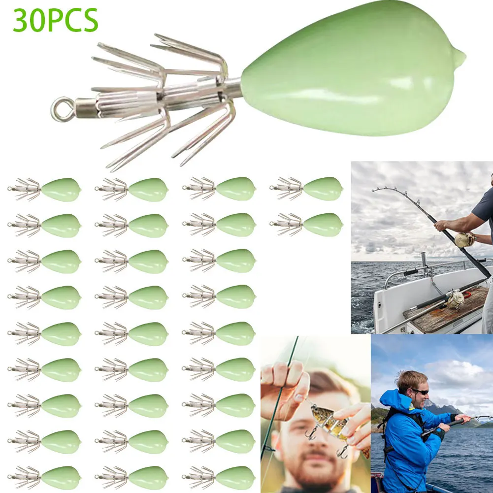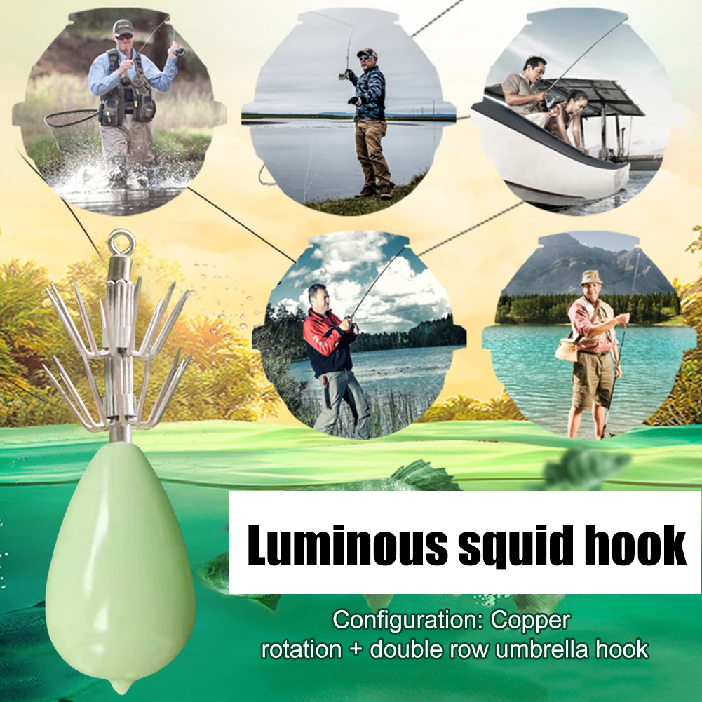 Double-Layer Luminous Swivel Squid Fishhook Glow in Dark Octopus Cuttlefish Fishing Jig Hook Fishing Tackle Accessories