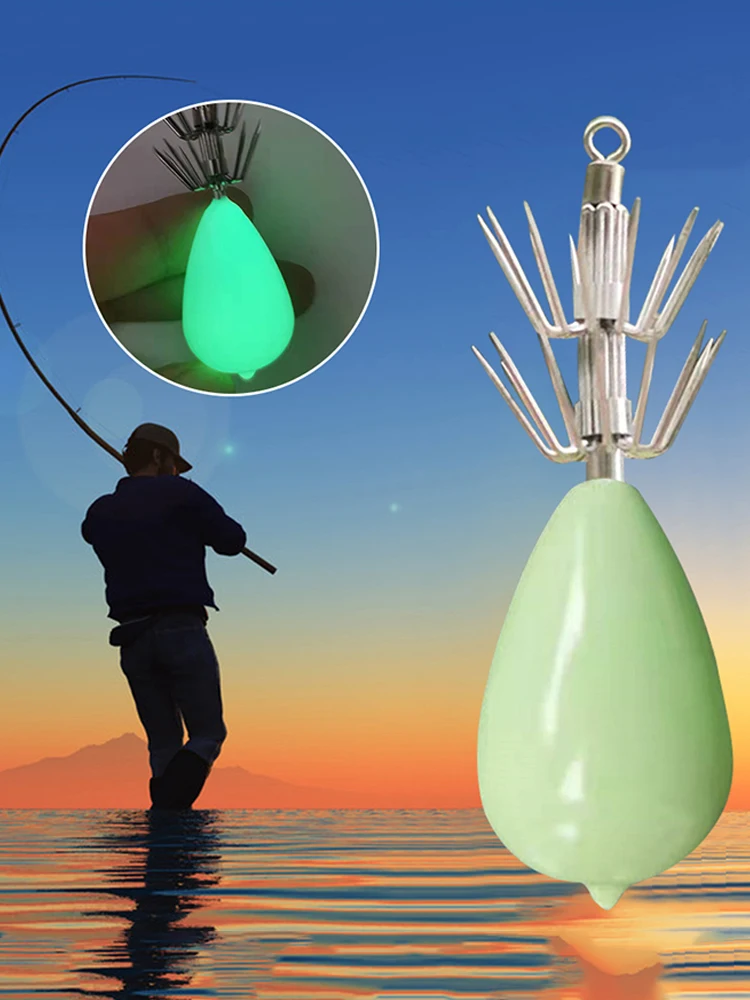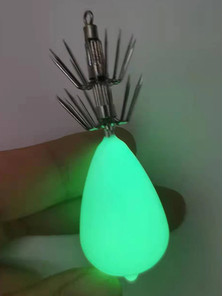 Specification: Name: rotating squid hook Material: lead hammer + soft rubber Color: luminous Specifications: 11g, 30g, 45g Configuration: copper rotating + double-row umbrella hooks Environment: fishing boats at sea to catch squid, catfish, etc. Note: