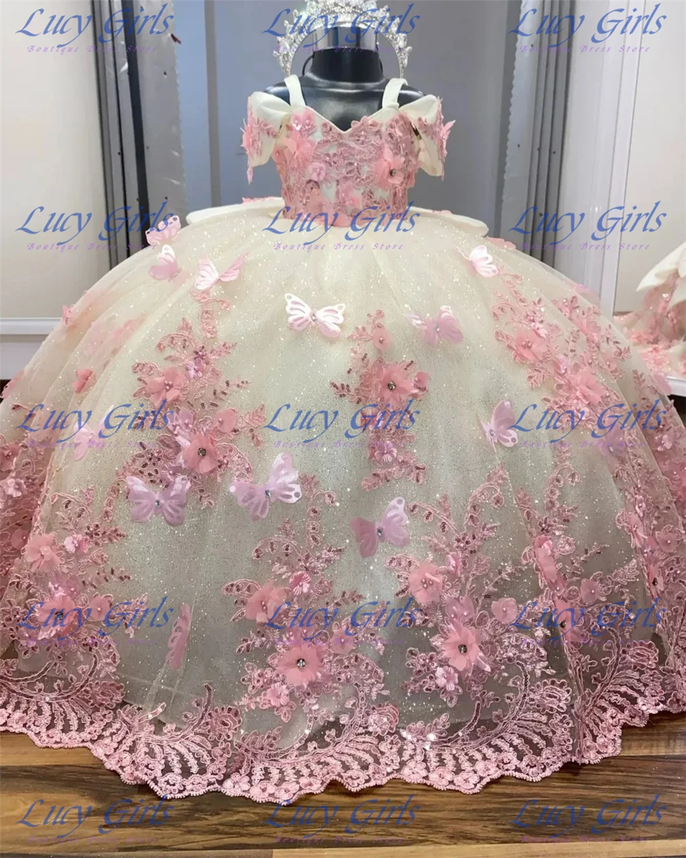 Luxurious Quality Pink Flower Girl Dress Tulle Fluffy With Butterfly Applique For Kids Birthday Wedding Party Evening Ball Gowns