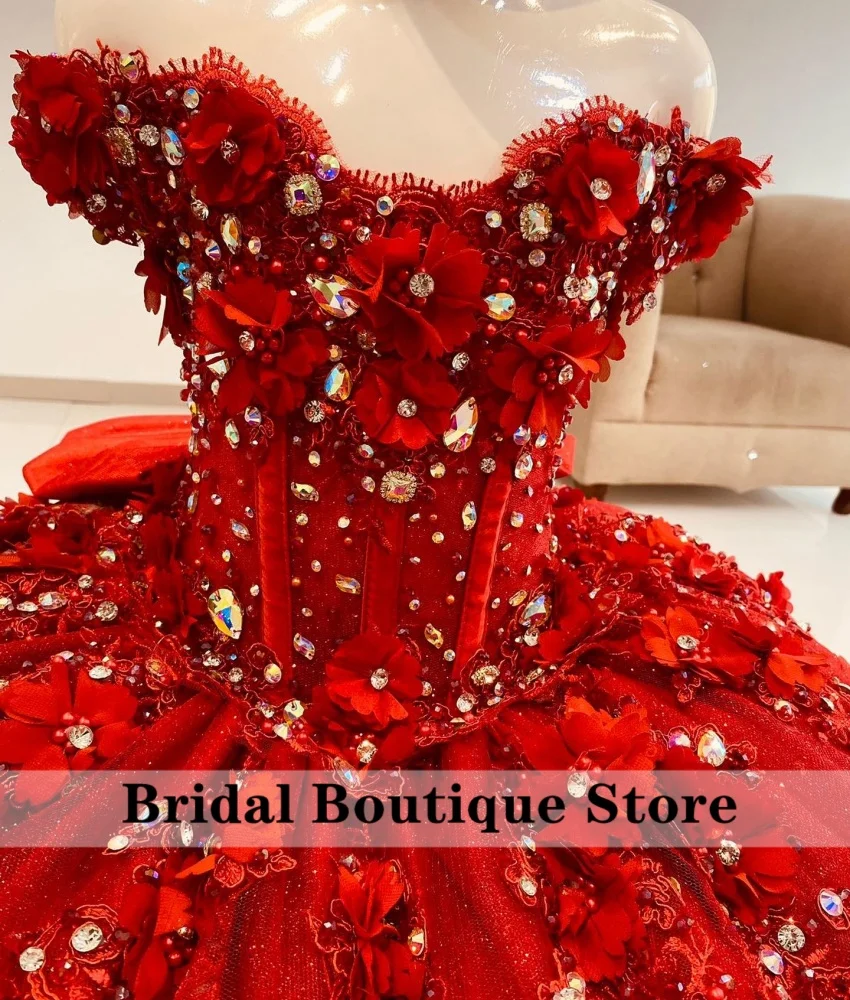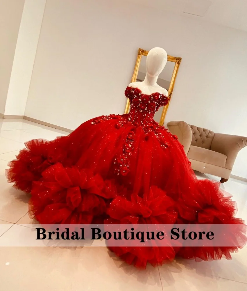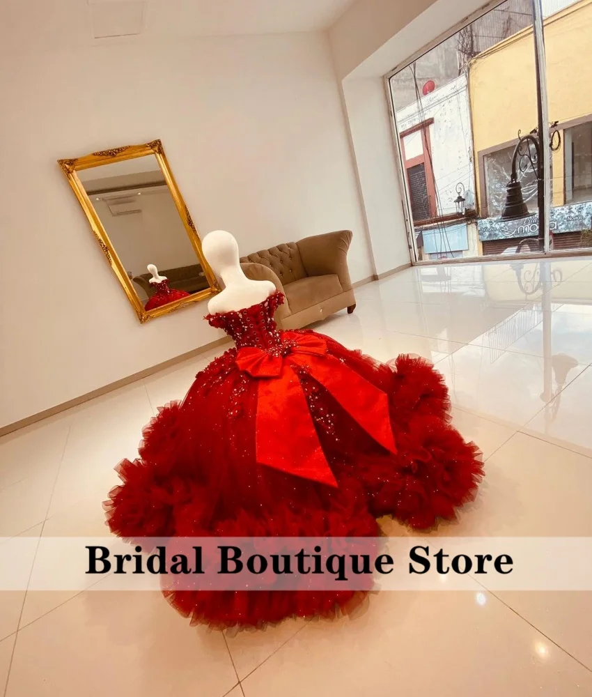 Luxury 2026 Red Flower Girls Dress For Weddings Floral Applique Glitter Bead Diamonds With Bow Birthday Gown Ruffles Customized