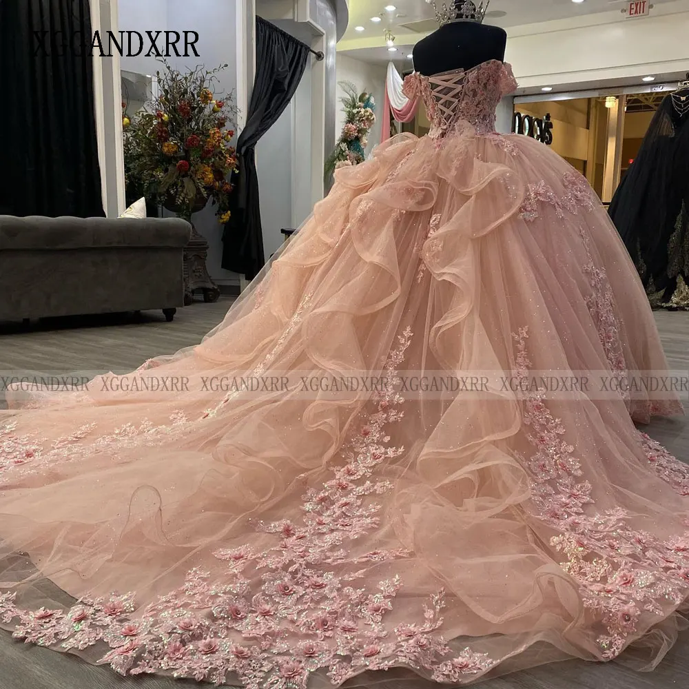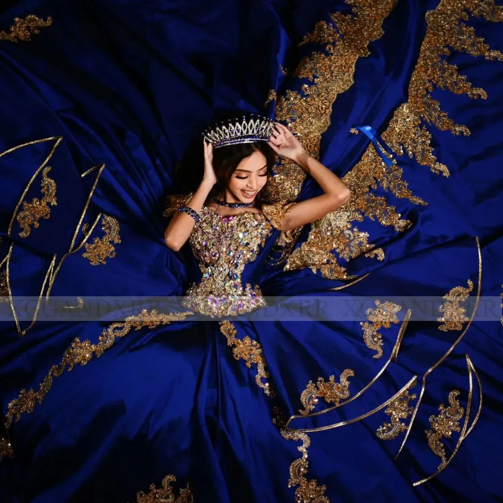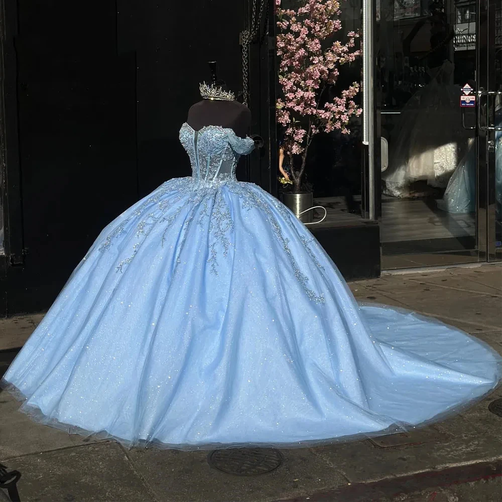Luxury Beaded Blue Ball Gown Mexican Quinceanera Dress 2024 Princess Prom Sweet 16 Dress Vestidos De XV Birthday Pageant Dress