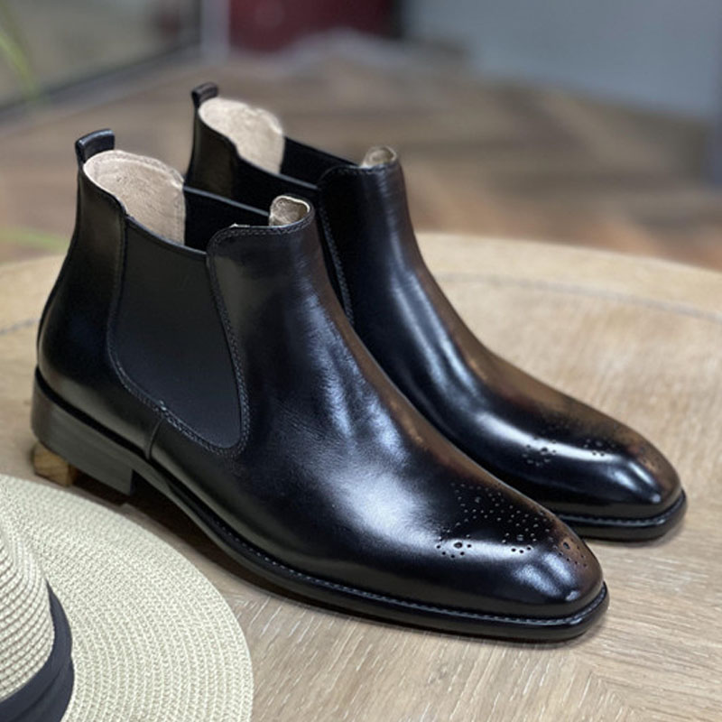 Luxury Genuine Leather Mens Ankle Boots Slip On Black Brown Dress Boot For Men Luxury Formal Shoe Italian Chelsea Boots Men