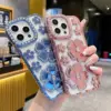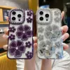 Luxury Glitter Jewelled Case For iPhone 16 Pro Max 16Plus Plating Flower Cover For iPhone 15 Pro 14 13 12 11 Soft Shockroof Case